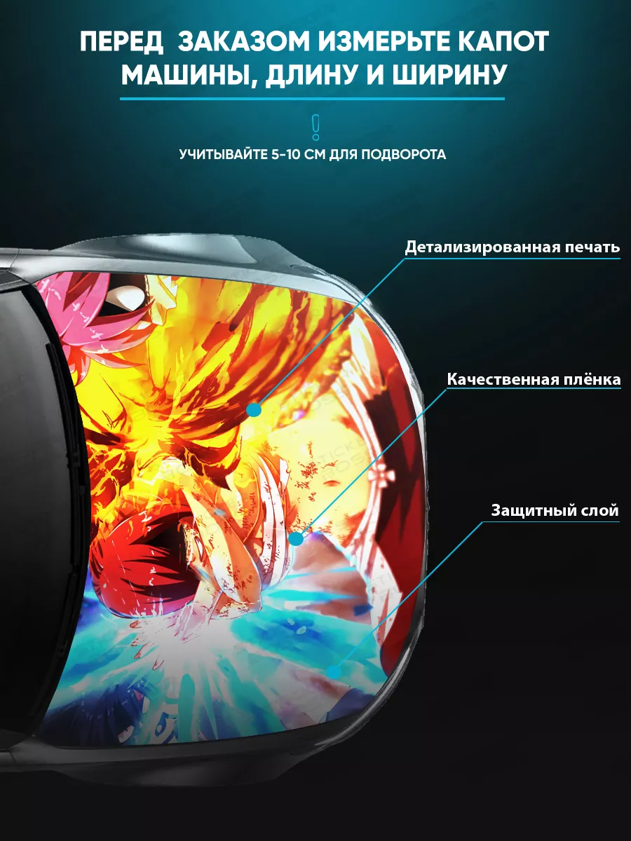 Преобразите внешний вид вашего автомобиля с помощью уникальной наклейки на капот с аниме! Эта большая наклейка размером 155х119 см идеально подойдет для большинства популярных моделей, будь то седан, хэтчбек или универсал