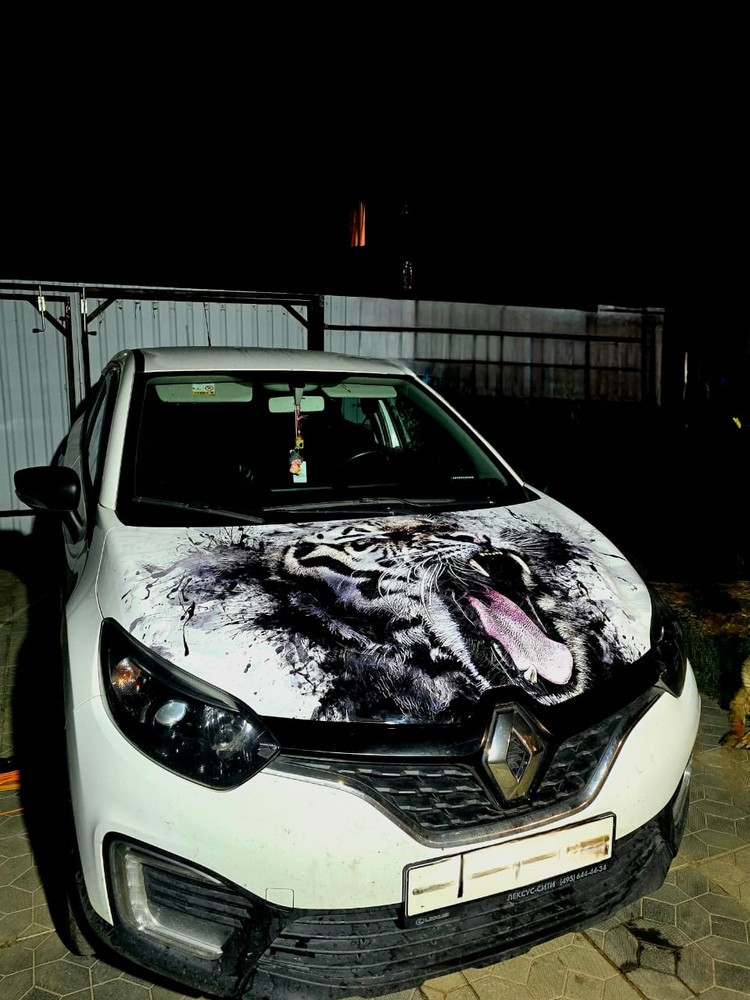 Подходит для капота седанов, хэтчбеков и универсалов. При желании можно подрезать по форме и размеру автомобиля. В коллекции есть различные дизайны, включая животные, аниме, флаги и пейзажи.