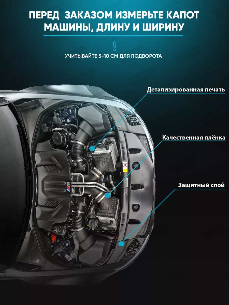 Лист можно подрезать под нужный размер. Наносится на чистую поверхность капота; подходит для широкого круга моделей. При необходимости наклейку можно снять без следов.