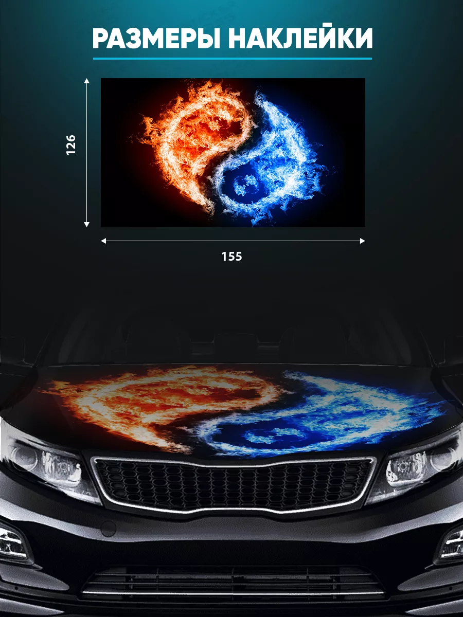 Эффектная наклейка на капот позволяет выделить стиль автомобиля и придать ему индивидуальность. Размер 155x119 см обеспечивает заметный вид и подходит для большинства кузовов — от седанов до хэтчбеков и универсалов. Материал — самоклеящаяся виниловая пленка ПВХ с верхним слоем ламинации, которая защищает цвет и увеличивает износостойкость под воздействием погодных условий.