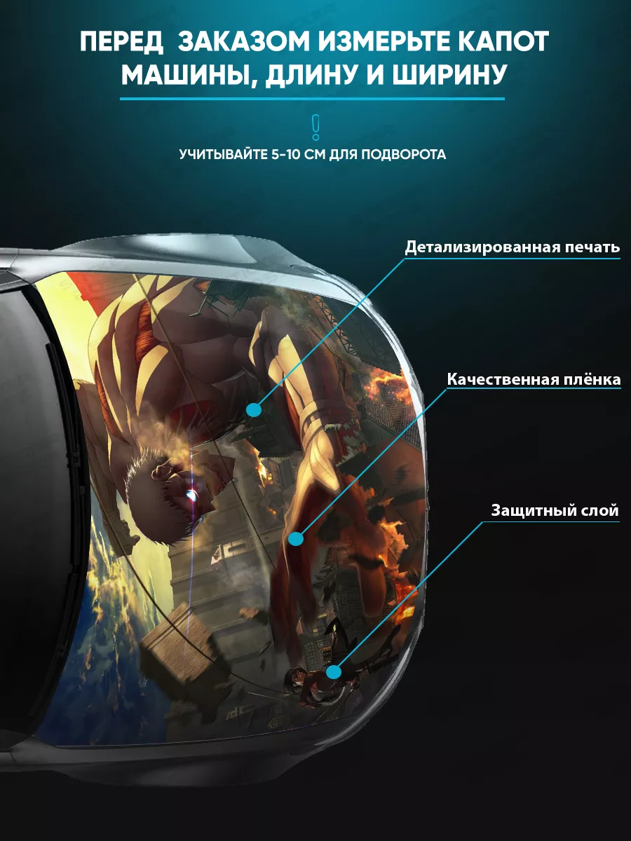 Преобразите внешний вид вашего автомобиля с помощью уникальной наклейки на капот с аниме! Эта большая наклейка размером 155х119 см идеально подойдет для большинства популярных моделей, будь то седан, хэтчбек или универсал