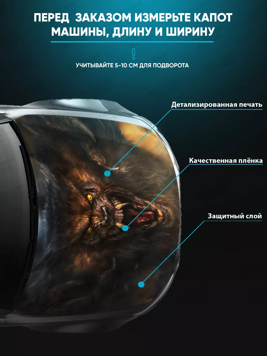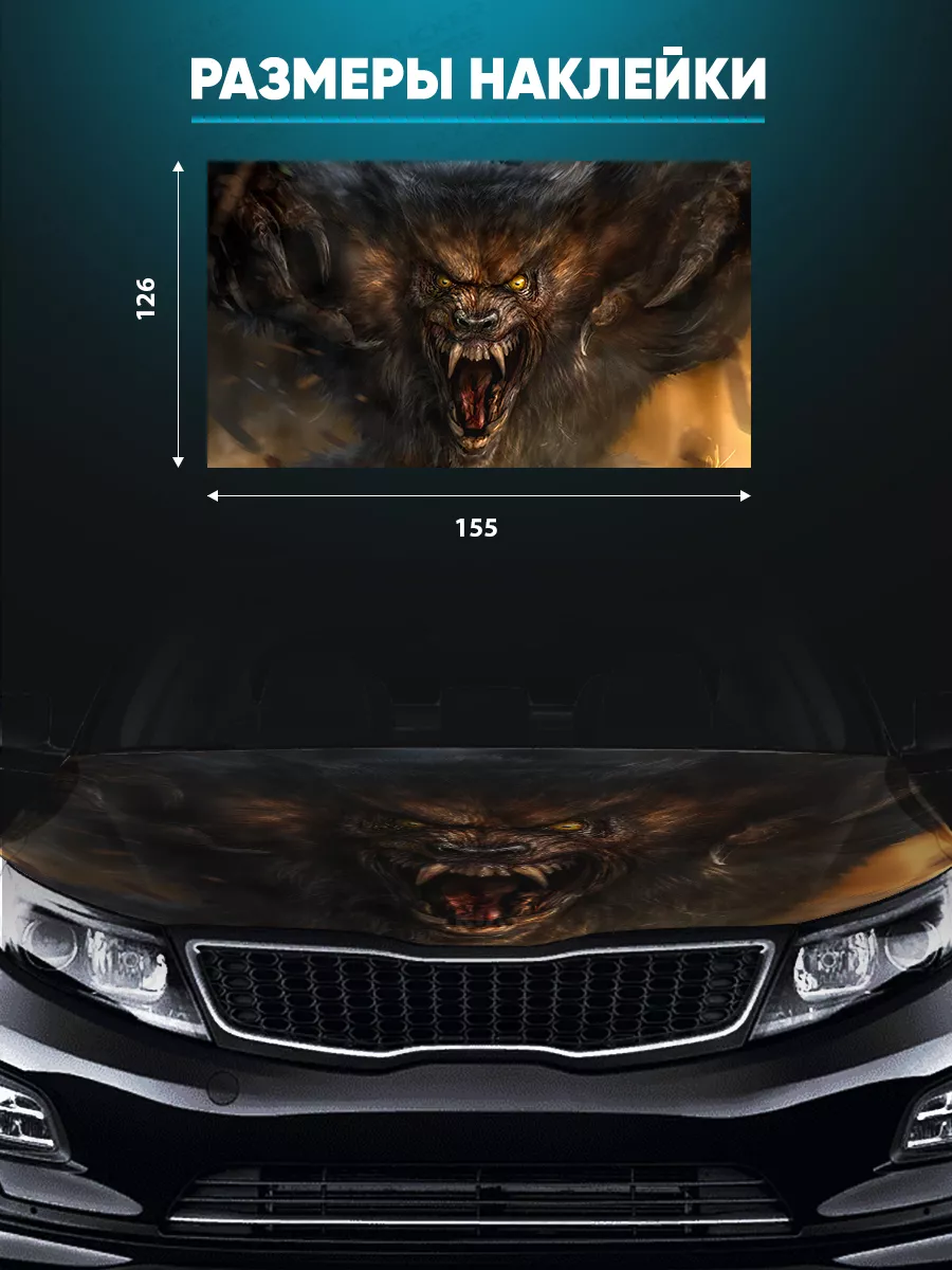 Представляем большую наклейку на капот с изображением волков, которая станет идеальным акцентом для вашего автомобиля