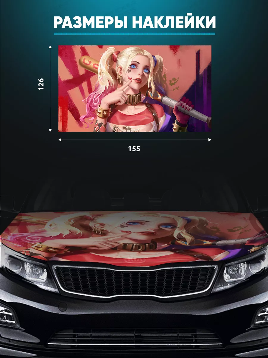 Наклейка на капот автомобиля размером 155х119 см представляет собой декоративное улучшение внешнего вида машины. Универсальный формат позволяет установить стикер на капоты большинства моделей: седаны, хэтчбеки и универсалы. По желанию можно подрезать лист под нужный контур.