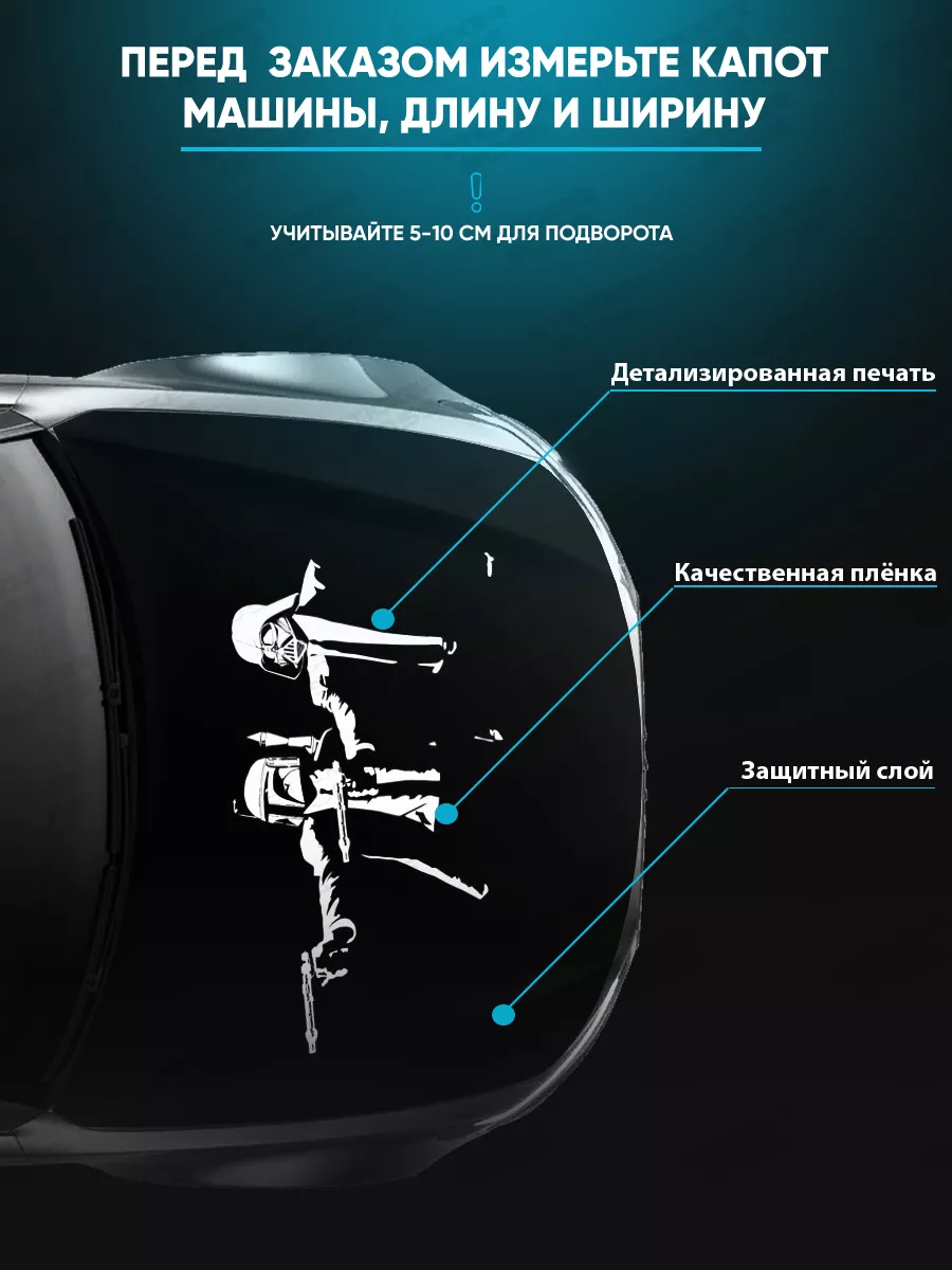 Подходит для капотов седанов, хэтчбеков и универсалов. Наклейка добавляет автомобилю стиля и индивидуальности, сохраняя при этом приглядный внешний вид.