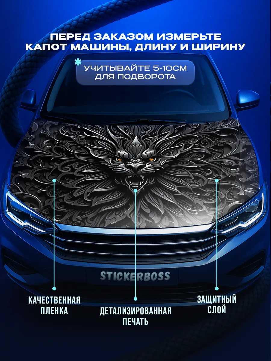 Эта наклейка на капот обеспечивает декоративное оформление автомобиля и легко адаптируется к разным моделям. Размер наклейки 155x119 см, универсальный и позволяет при необходимости подрезать лист под нужный размер. Изготовлена на самоклеящейся виниловой пленке ПВХ, которая обеспечивает прочное приклеивание к поверхности и защиту от воды, мойки и непогоды, не выгорает на солнце благодаря дополнительному верхнему слою ламинации. При желании легко снимается и не оставляет следов. В коллекции представлены варианты с разными изображениями — животные, аниме, флаги России, города, пейзажи и многое другое. Наклейка упаковывается в специальную защитную тубу, что обеспечивает сохранность во время доставки и яркие краски. Эти наклейки станут отличным подарком близким на новый год, день рождения и другие праздники. Сделайте повседневную езду ярче вместе с Stickerboss!