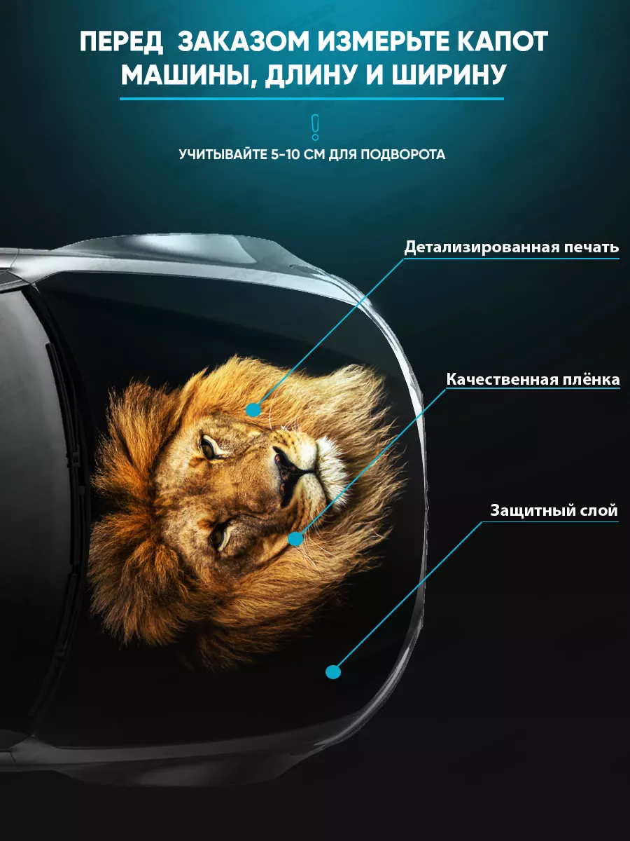Большая декоративная наклейка на капот авто размером 155х119 см позволяет добавить индивидуальности вашему автомобилю. Универсальная по применению: подходит для седанов, хэтчбеков и универсалов. При желании можно подрезать лист под нужный размер. Изготовлена на самоклеящейся виниловой пленке ПВХ с верхним слоем ламинации, что обеспечивает прочное сцепление, защиту от влаги, пыли и агрессивных погодных условий, а также сохранение яркости цвета под солнцем. Наклейка легко снимается без следов.