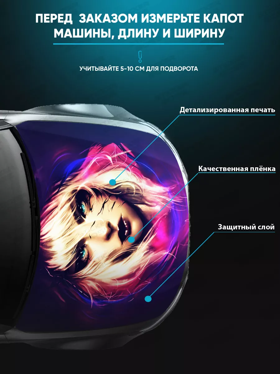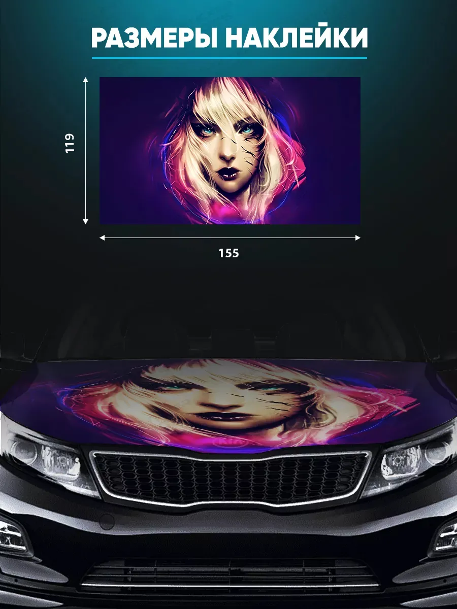 Наклейка на капот автомобиля размером 155×119 см позволяет оформить внешний вид машины стильно и заметно. В ассортименте Stickerboss представлены варианты с надписями, персонажами известных фильмов, изображениями животных, аниме, флагами России, городами и живописными пейзажами — на любой вкус.