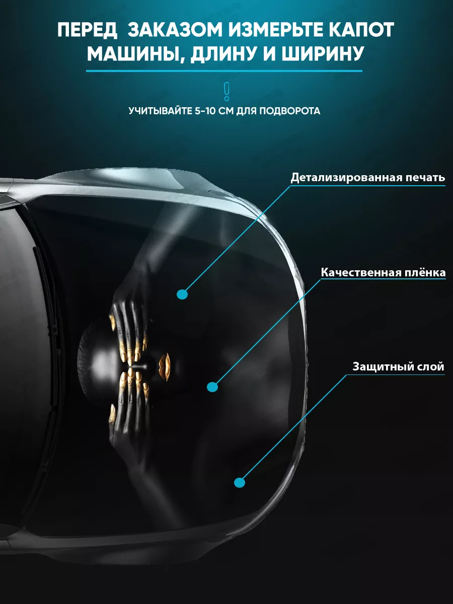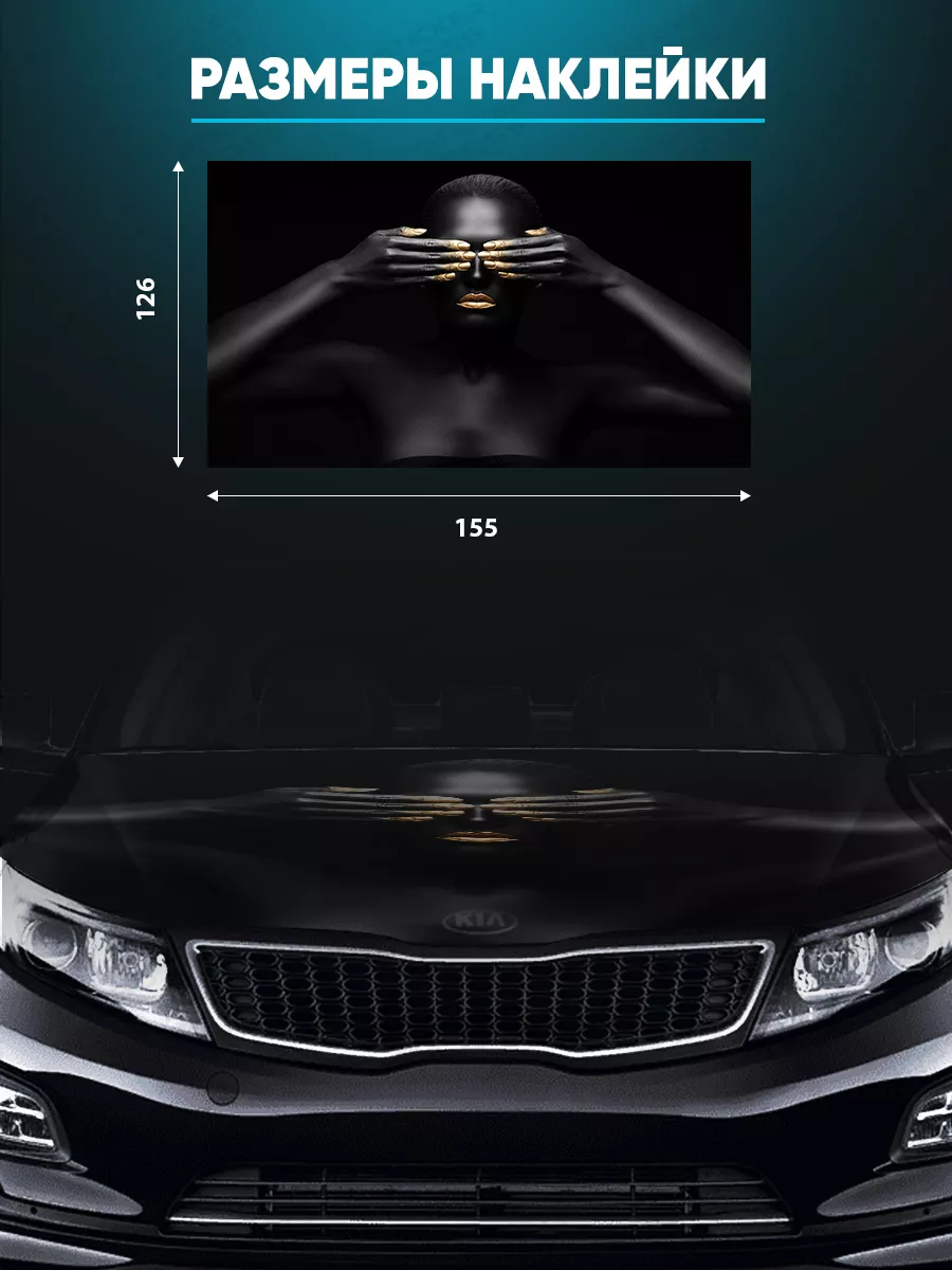 Наклейка предназначена для украшения капота автомобиля; при необходимости можно подрезать под нужный размер.