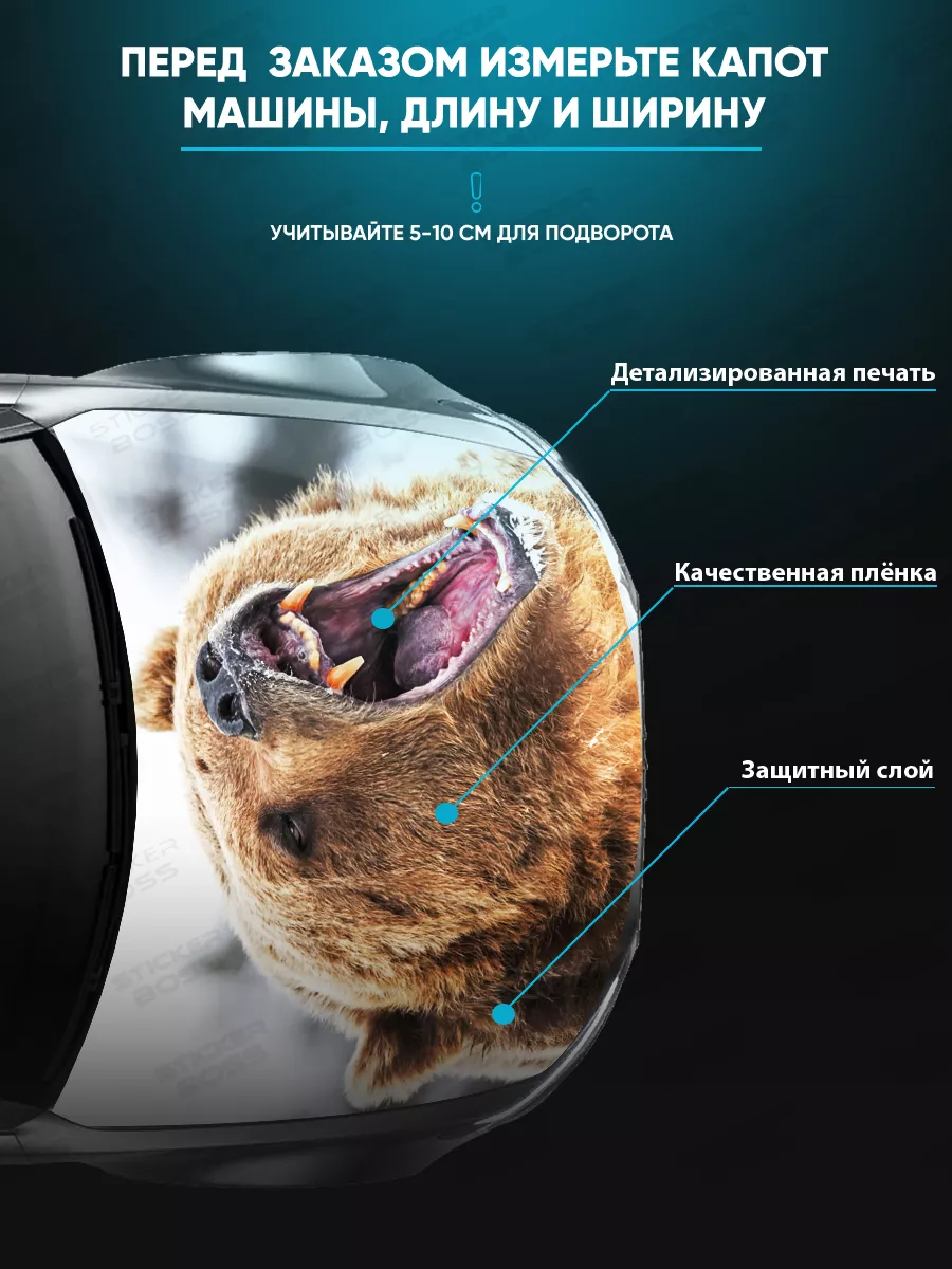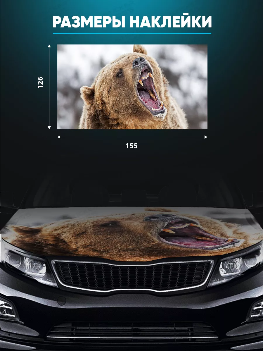 Представляем большую наклейку на капот авто с изображением бурого медведя, которая станет идеальным акцентом для вашего автомобиля