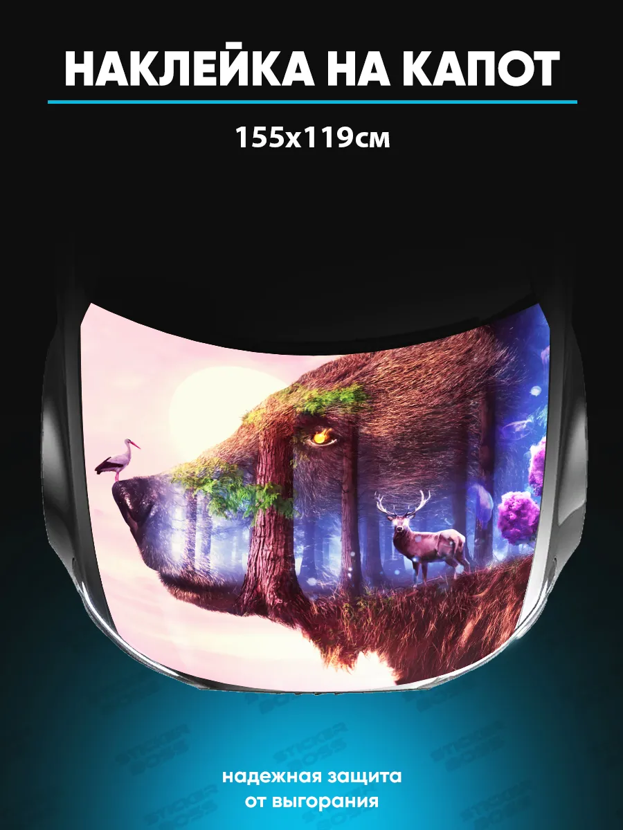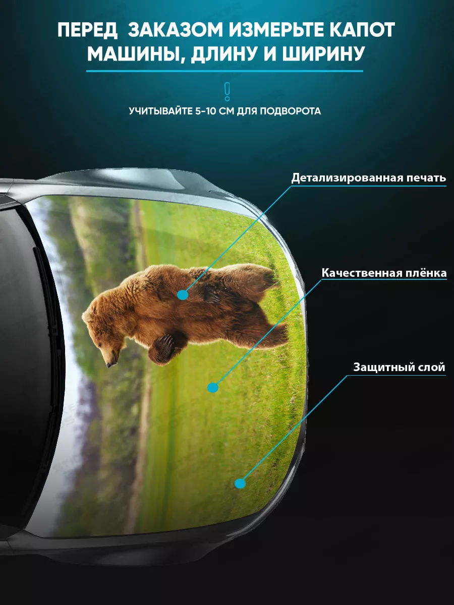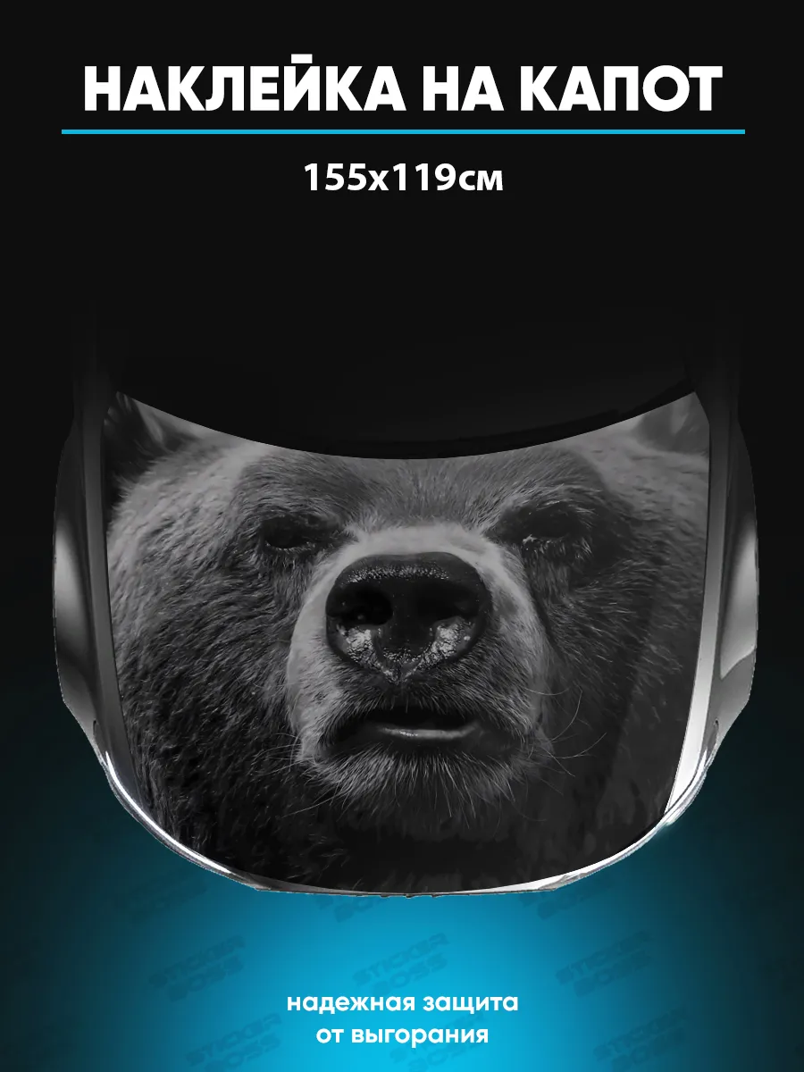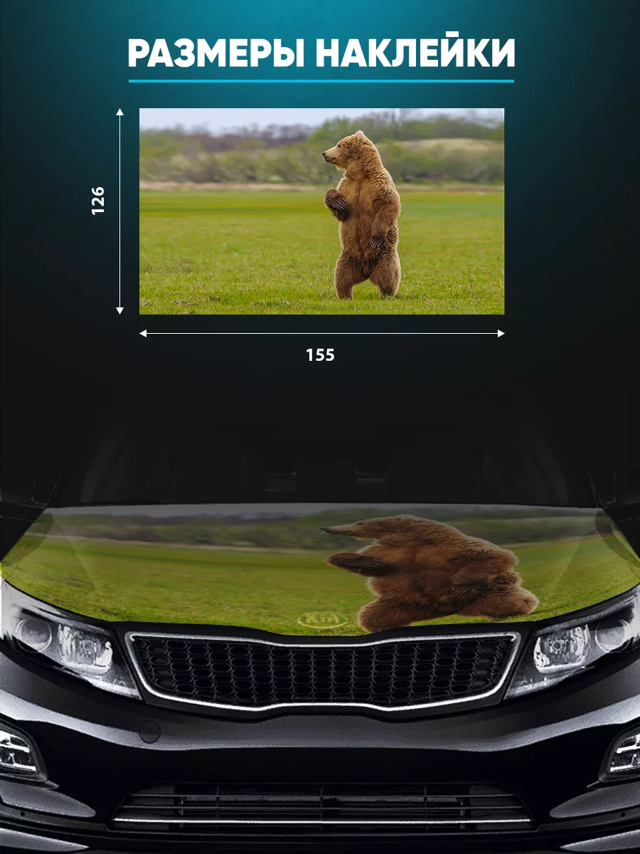 Представляем большую наклейку на капот авто с изображением бурого медведя, которая станет идеальным акцентом для вашего автомобиля