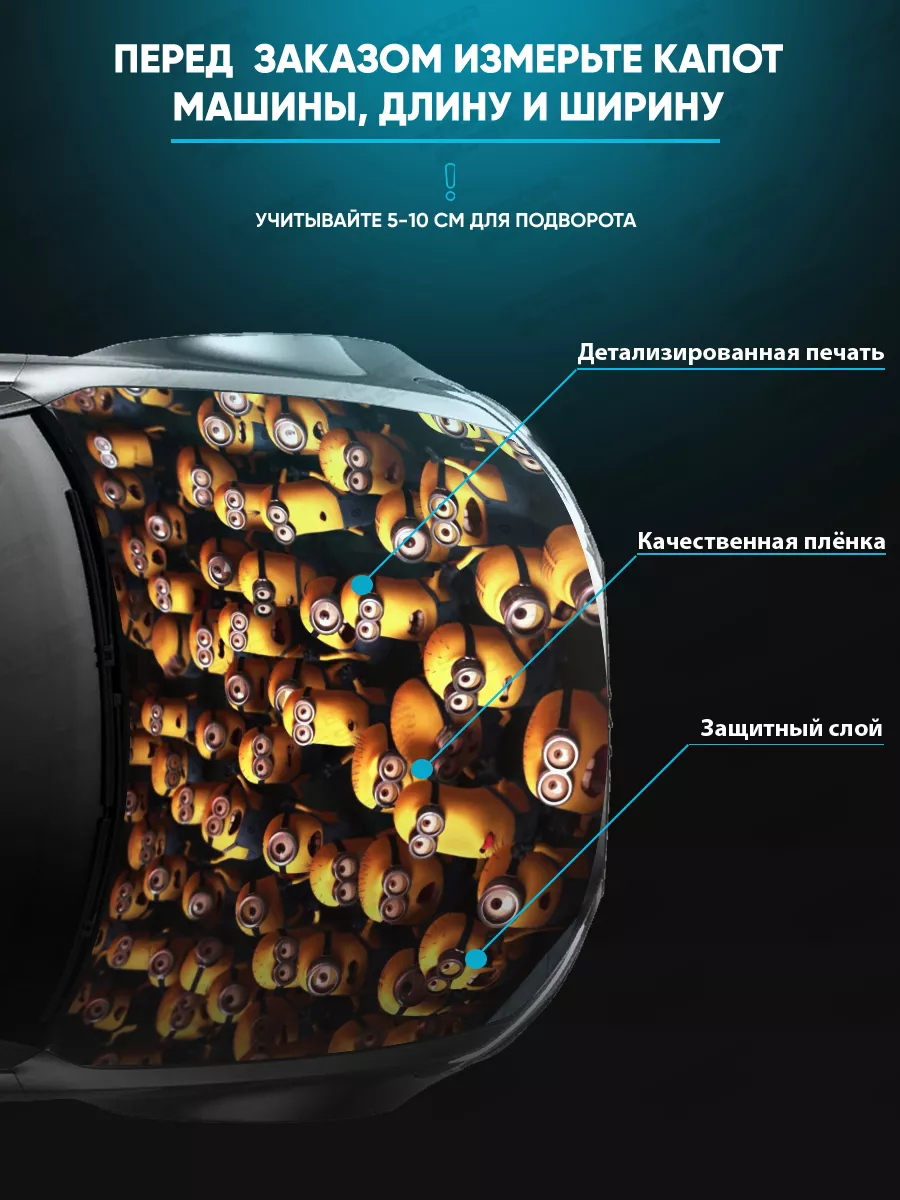 Большая декоративная наклейка на капот автомобиля размером 155x119 см позволяет придать машине выразительный стиль и индивидуальность. Выполнена на основе самоклеящейся виниловой пленки ПВХ, которая обеспечивает надежное приклеивание к поверхности и защиту от влаги, пыли и внешних воздействий. Ламинационный верхний слой предотвращает выцветание под солнечными лучами, что сохраняет яркость картинки на долгое время. При желании можно подрезать лист под нужный размер, что позволяет адаптировать наклейку под конкретный капот.
