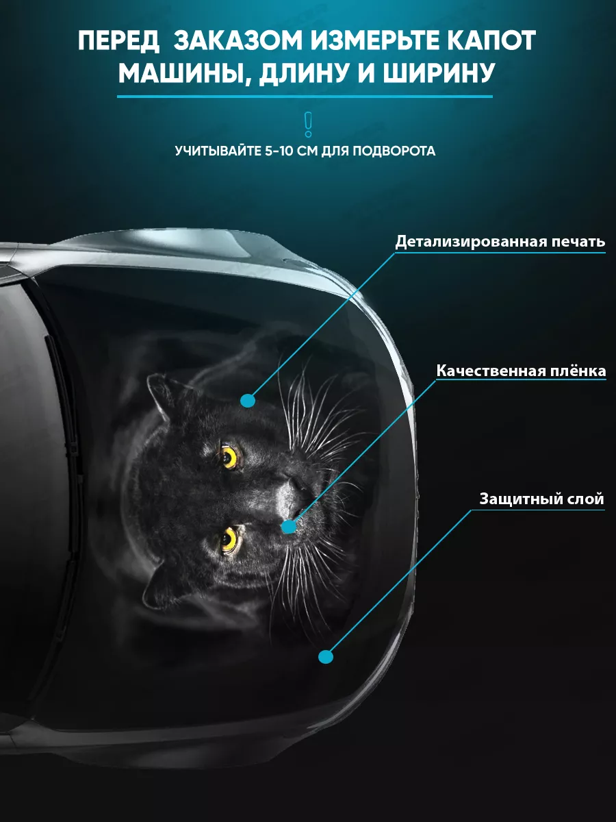 Крупная наклейка на капот размером 155х119 см создана для придания автомобилю уникального стиля. Выполнена на основе самоклеящейся виниловой пленки ПВХ от бренда Stickerboss и защищена верхним слоем ламинации, что обеспечивает долговечность цвета и устойчивость к воздействиям окружающей среды. Дизайн Пантерa 181 подходит для широкого круга моделей и стилей.