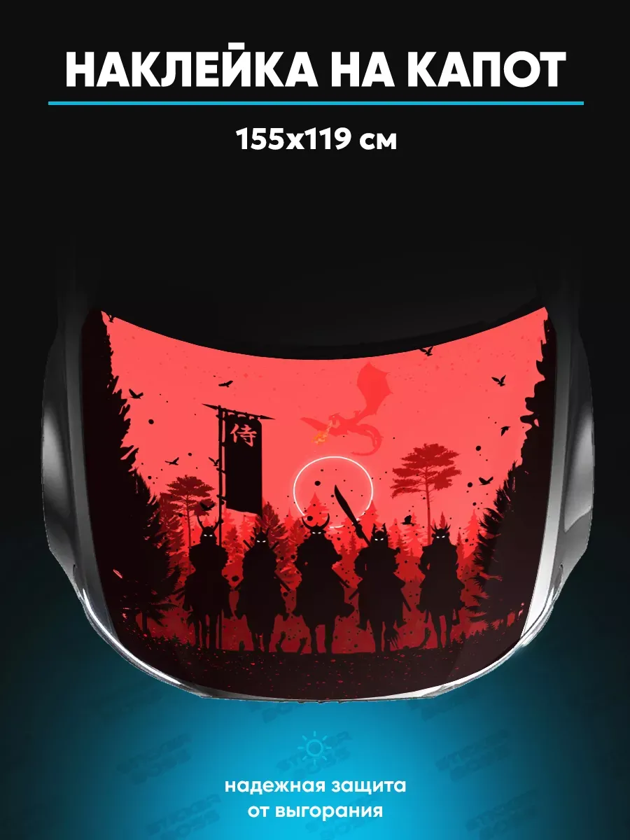 Представляем большую наклейку на капот с изображением самураев, которая станет идеальным акцентом для вашего автомобиля