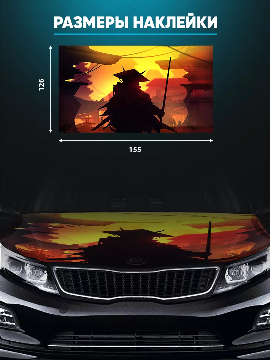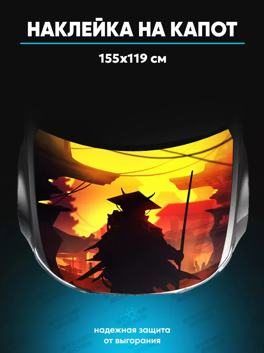 Представляем большую наклейку на капот с изображением самураев, которая станет идеальным акцентом для вашего автомобиля