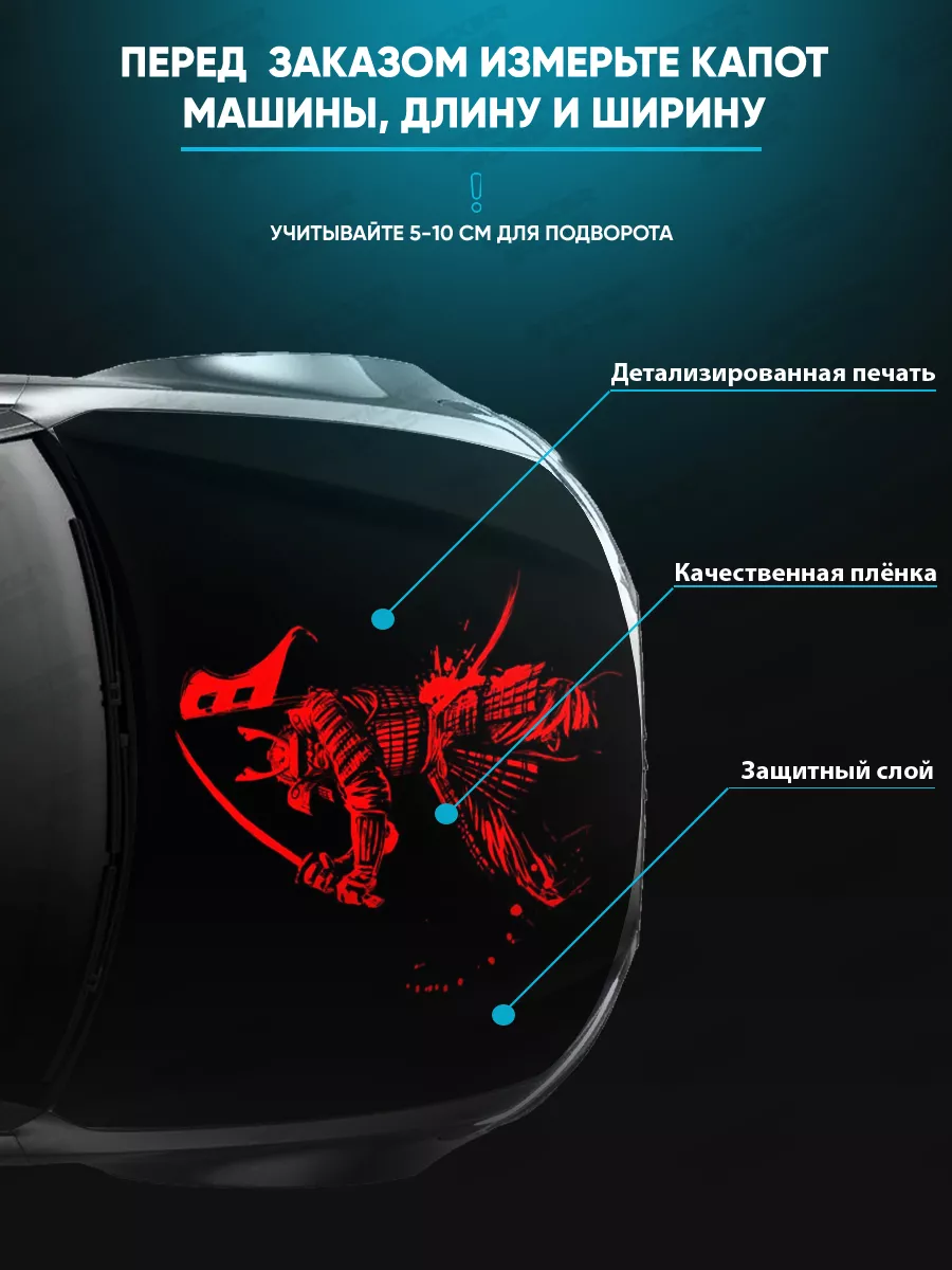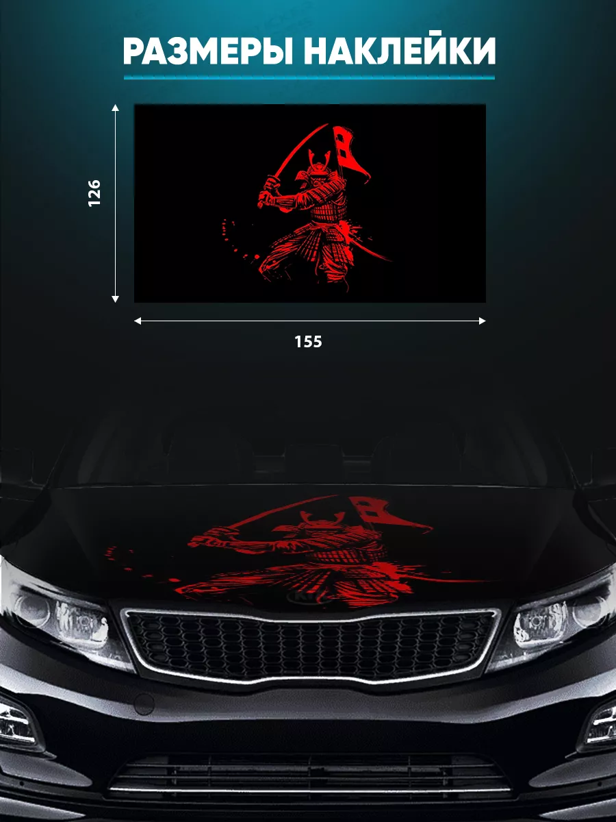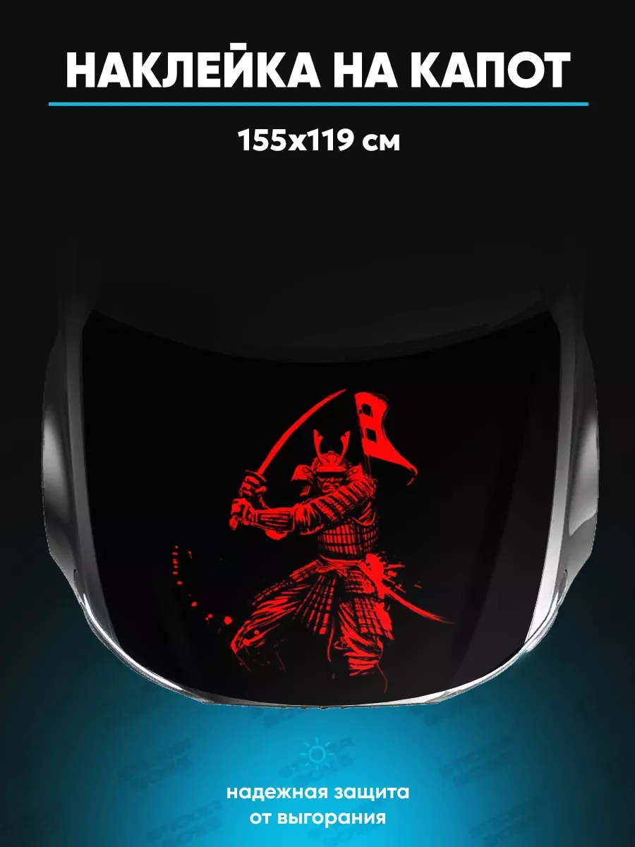 Представляем большую наклейку на капот с изображением самураев, которая станет идеальным акцентом для вашего автомобиля