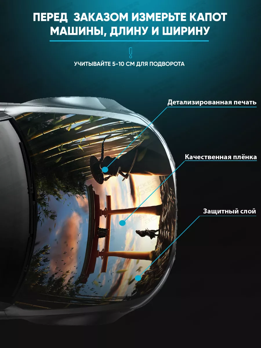 Представляем большую наклейку на капот с изображением самураев, которая станет идеальным акцентом для вашего автомобиля