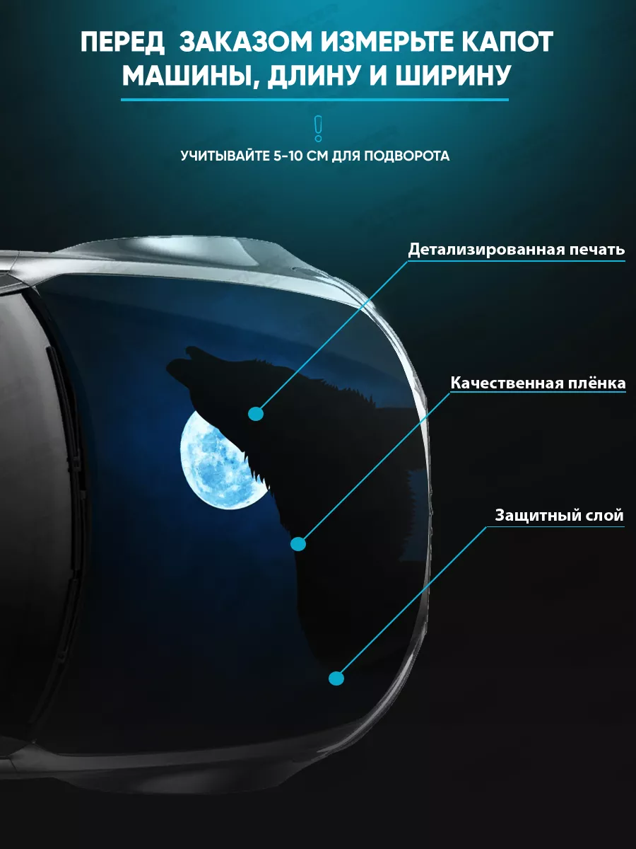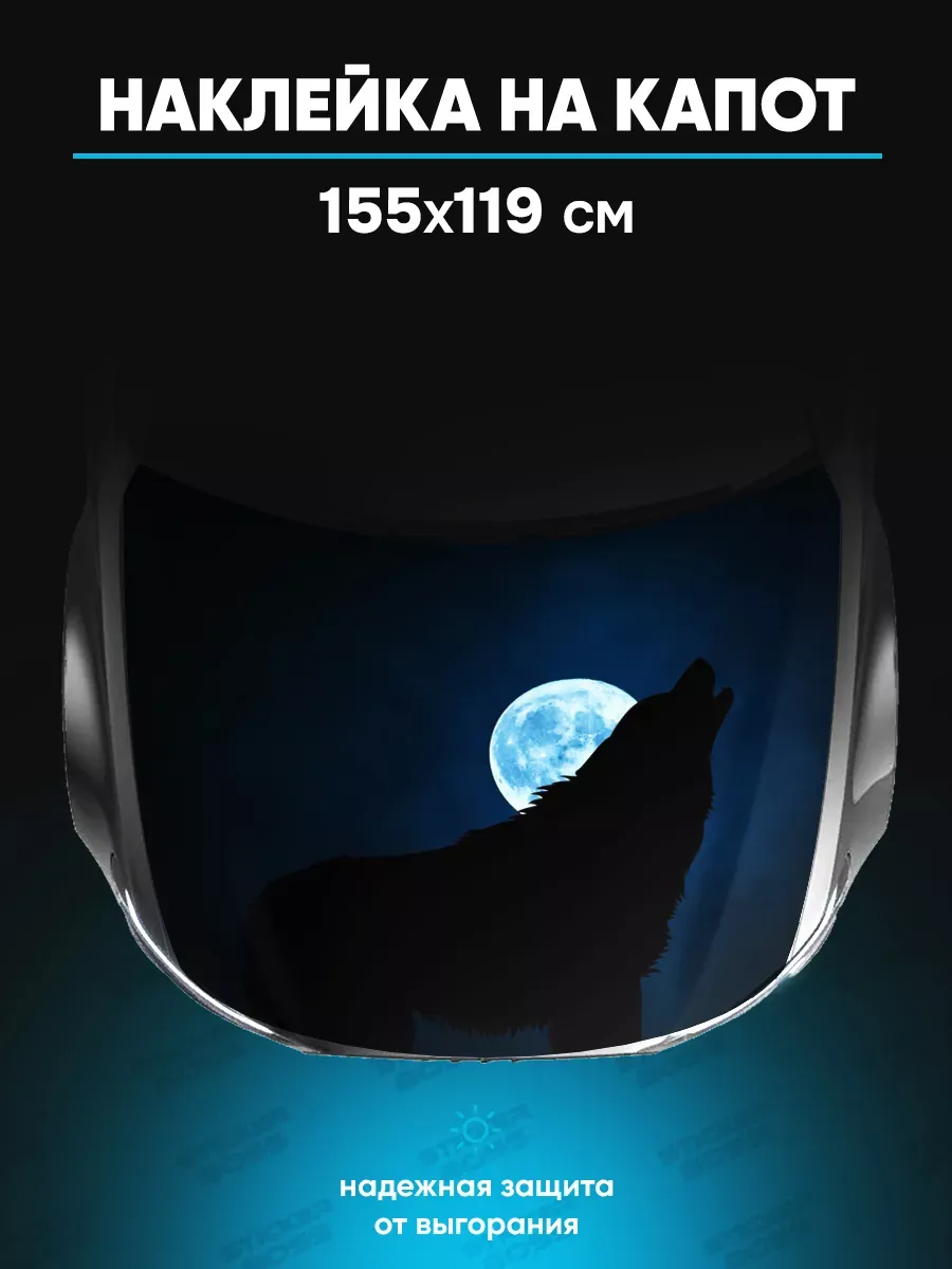 Представляем большую наклейку на капот с изображением волков, которая станет идеальным акцентом для вашего автомобиля