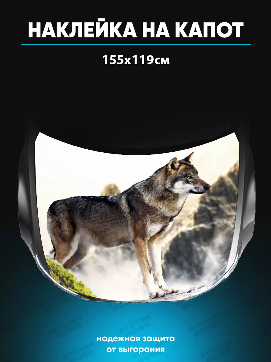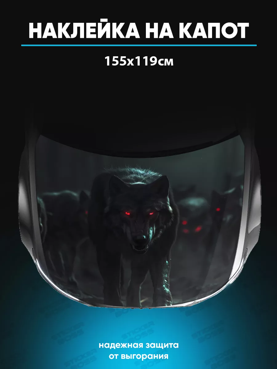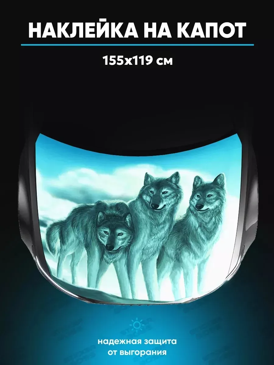 Представляем большую наклейку на капот с изображением волков, которая станет идеальным акцентом для вашего автомобиля
