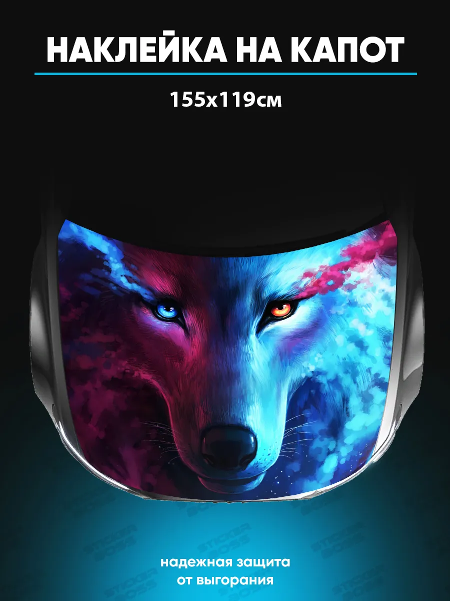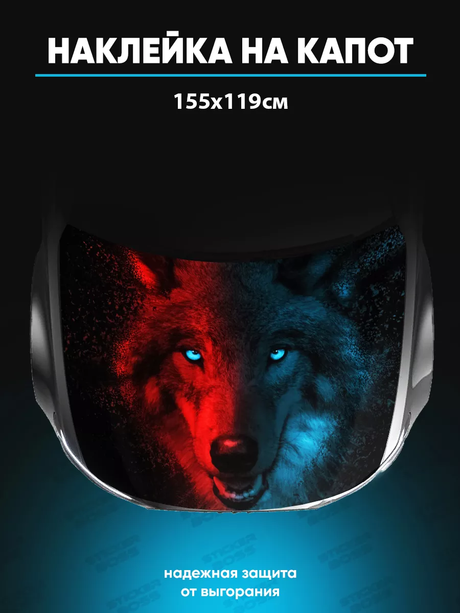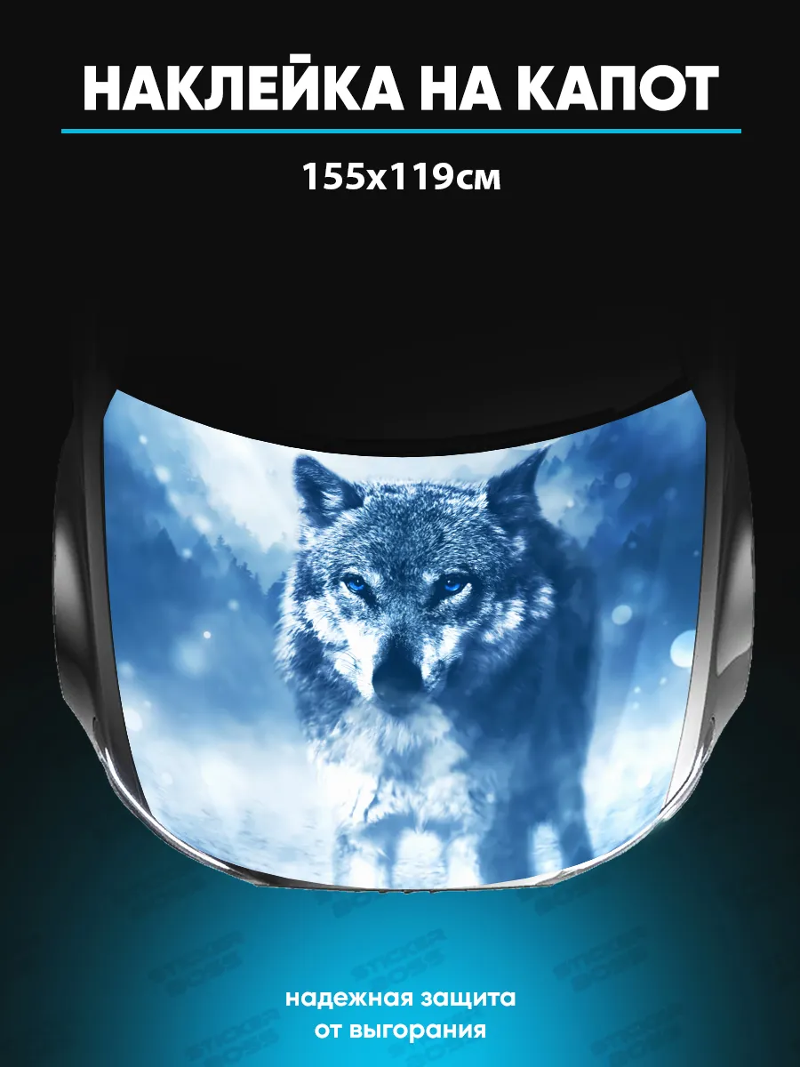 Представляем большую наклейку на капот с изображением волков, которая станет идеальным акцентом для вашего автомобиля