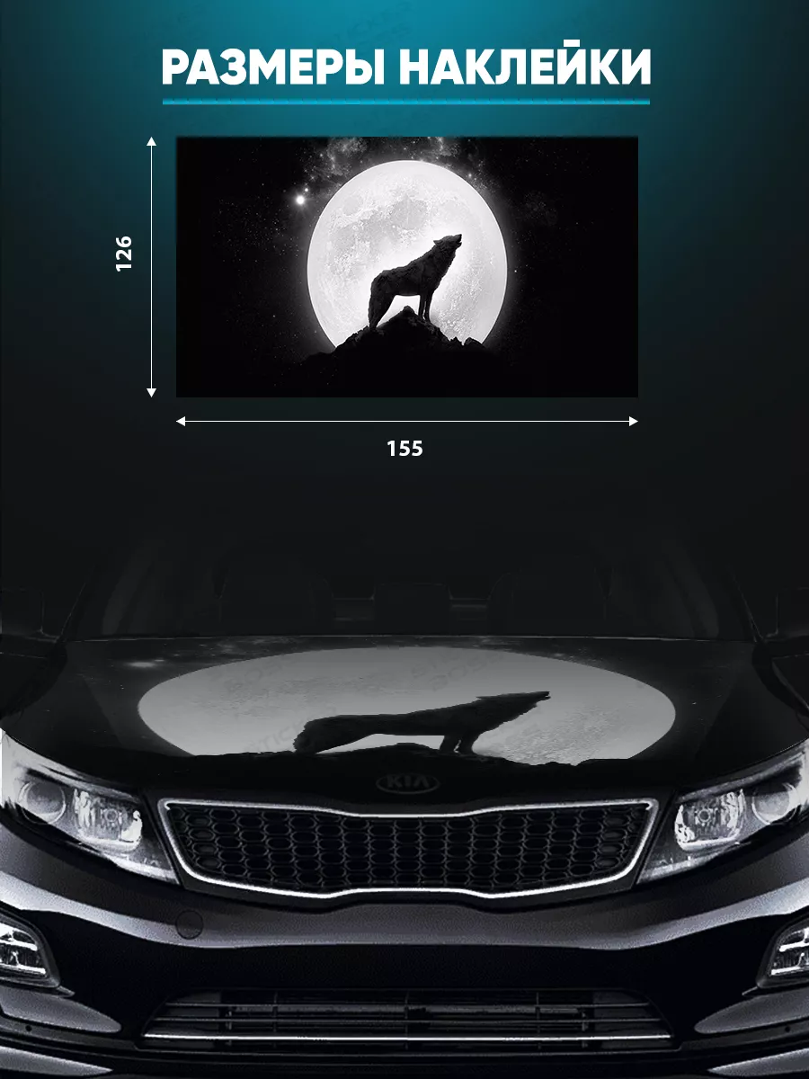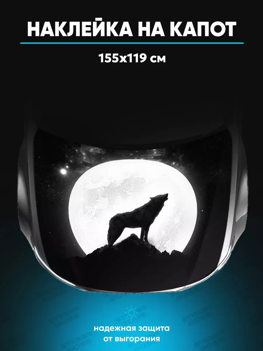 Представляем большую наклейку на капот с изображением волков, которая станет идеальным акцентом для вашего автомобиля
