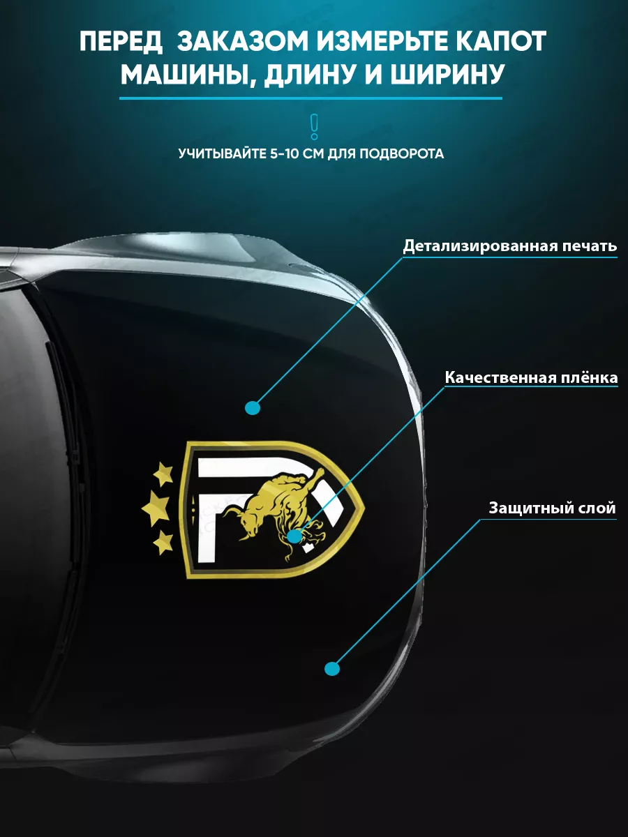 Декоративная наклейка предназначена для капота автомобиля. В коллекции Stickerboss представлены разнообразные принты: надписи, животные, аниме, флаги России, пейзажи и города — найдите дизайн по вкусу.