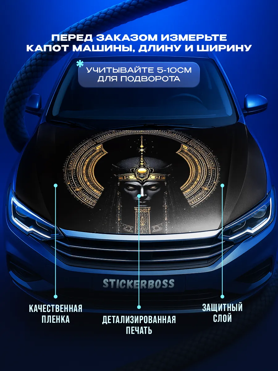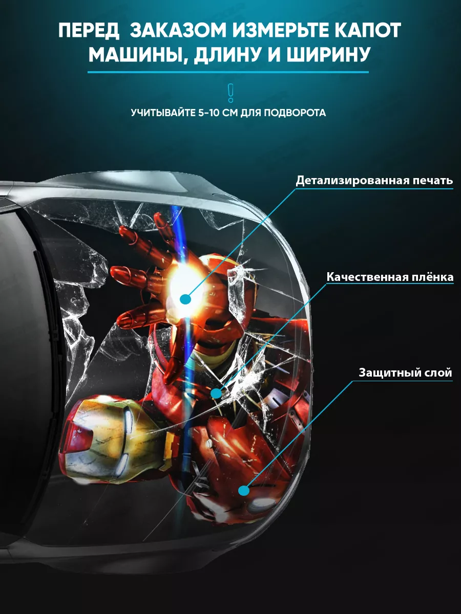 Эта наклейка на капот предназначена для придания автомобилю выразительного стиля при сохранении функциональности за счет прочной виниловой пленки. Размер 155х119 см делает ее универсальной и подходящей для большинства капотов седанов, хэтчбеков и универсалов. Плотная самоклеящаяся поверхность обеспечивает надежное прилегание и долговечность, а верхний слой ламинации защищает изображение от ультрафиолета и погодных условий.