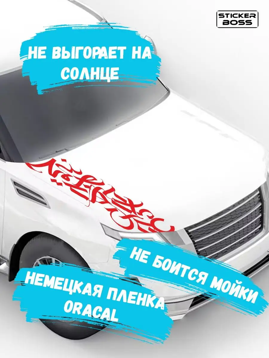 Эта наклейка обеспечивает стиль и индивидуальность автомобиля без дорогостоящего тюнинга. Каллиграфический узор добавляет динамику и изящество облику вашего авто. Изготовлена на основе виниловой пленки ПВХ Oracal и рассчитана на долговременное использование, стойкая к погодным условиям и ультрафиолету. Наклейка подходит для капота и кузова и доступна в трех цветах — белом, черном и красном. Лёгкость нанесения обеспечивается прочным клеевым слоем, а при удалении следы минимальны.