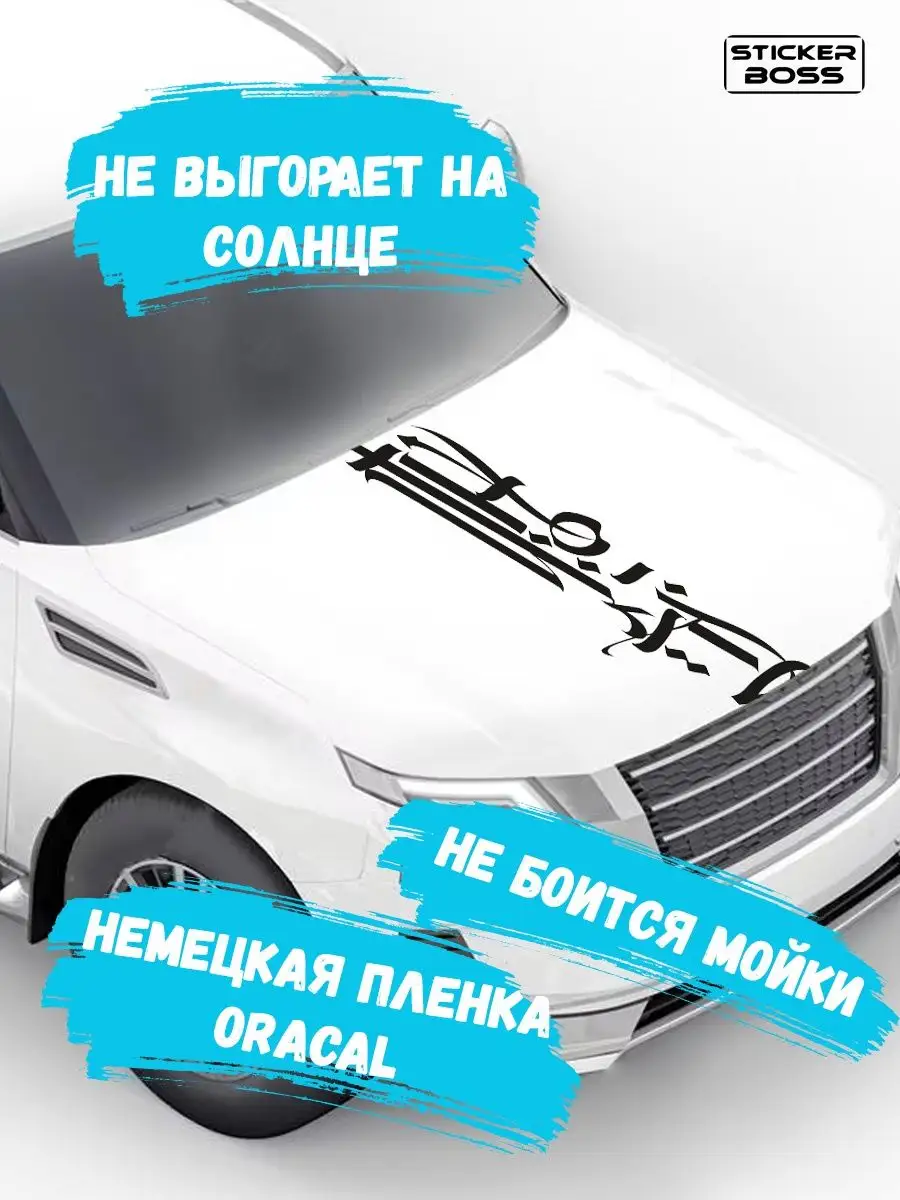 Стильная наклейка Stickerboss с каллиграфическим рисунком помогает подчеркнуть характер автомобиля и придать облику индивидуальность. Наклейка выполнена на высококачественной самоклеящейся пленке ПВХ Oracal, стойкой к условиям эксплуатации и не тускнеющей под солнечными лучами. Цвета доступны белый, черный и красный, чтобы подобрать вариант под стиль вашего авто. Размер наклейки 30х130, рассчитан на капот и часть кузова.