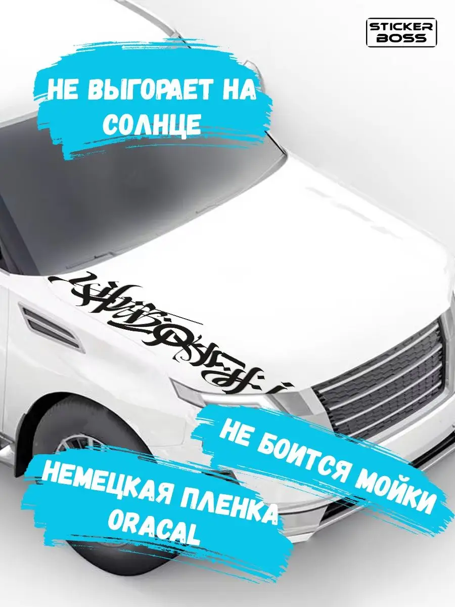 Наклейка на капот и кузов автомобиля в каллиграфическом стиле позволяет выразить индивидуальность и добавить изысканности облику вашего авто. Изготовлена на самоклеящейся пленке ПВХ Oracal высокого качества. Цвет черный, размер 30x130 мм. Наклейка устойчива к погодным условиям и не тускнеет под палящими лучами солнца, что обеспечивает долговременный вид вашего автомобиля.