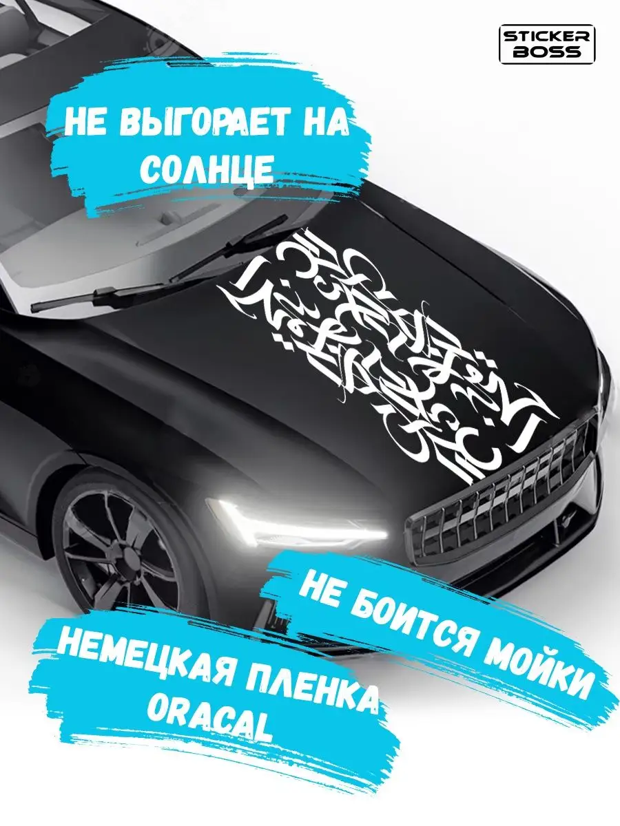 Наклейка Каллиграфия 45×130 на капот и кузов автомобиля — это декоративный элемент, который позволяет выразить индивидуальность автомобиля без дорогостоящего тюнинга. Наклейка выполнена из высококачественной самоклеющейся пленки ПВХ Oracal и сохраняет яркость изображения в условиях различных погодных условий.