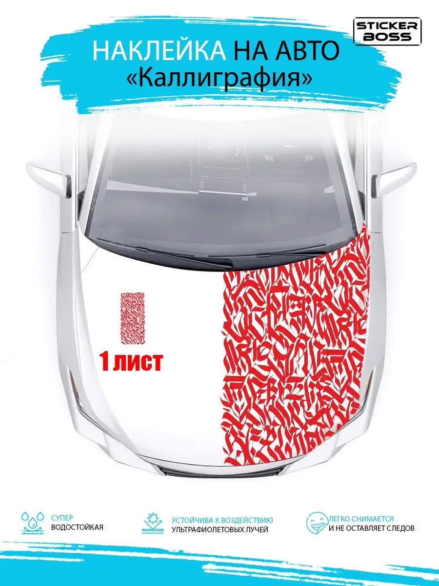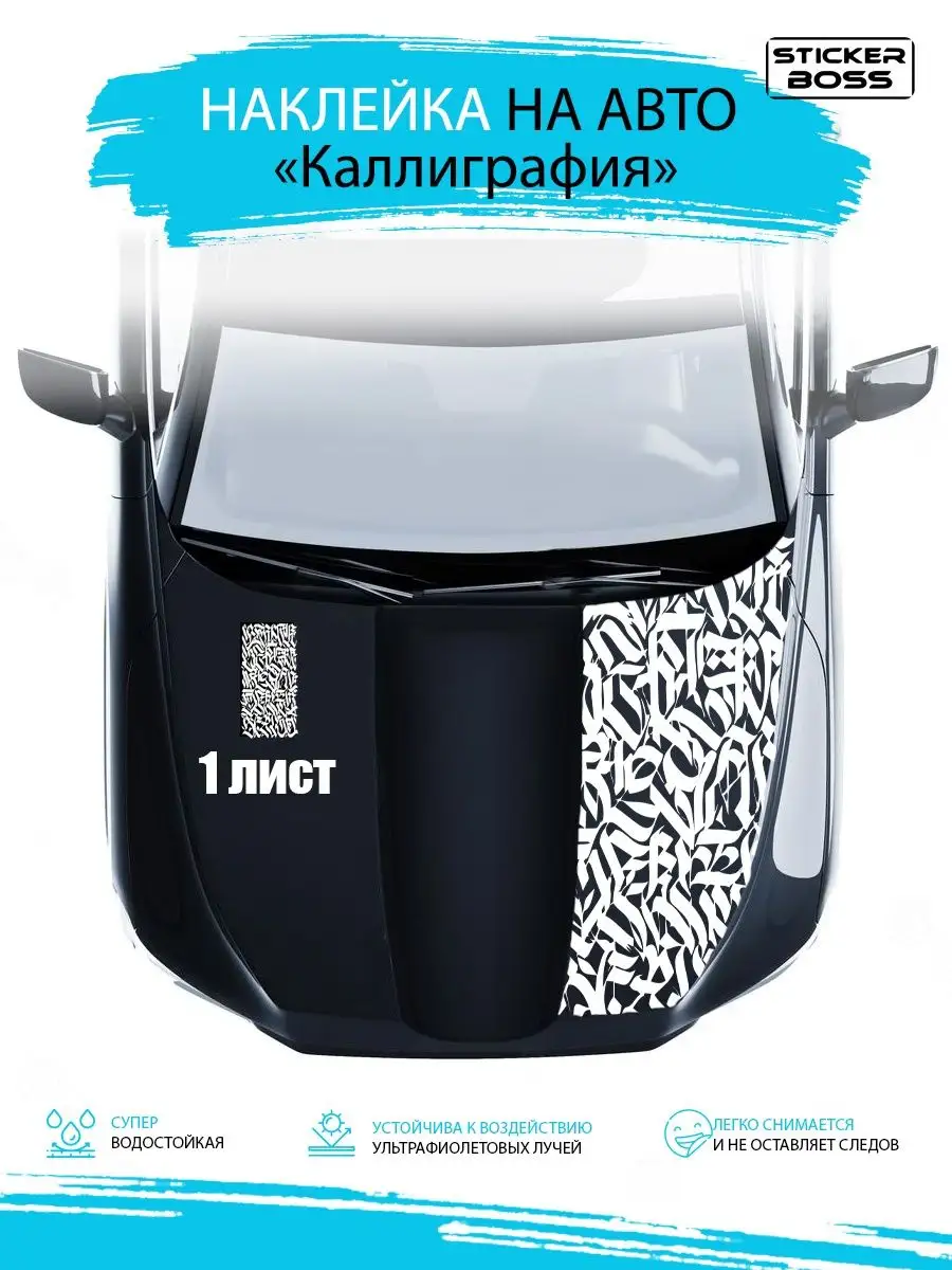 Эта наклейка создаёт стильный внешний вид автомобиля за счёт качественной виниловой пленки Oracal и продуманного дизайна Каллиграфия. Материал устойчив к мытью, пыли и ультрафиолету, сохраняет цвет и форму под воздействием погодных условий.
