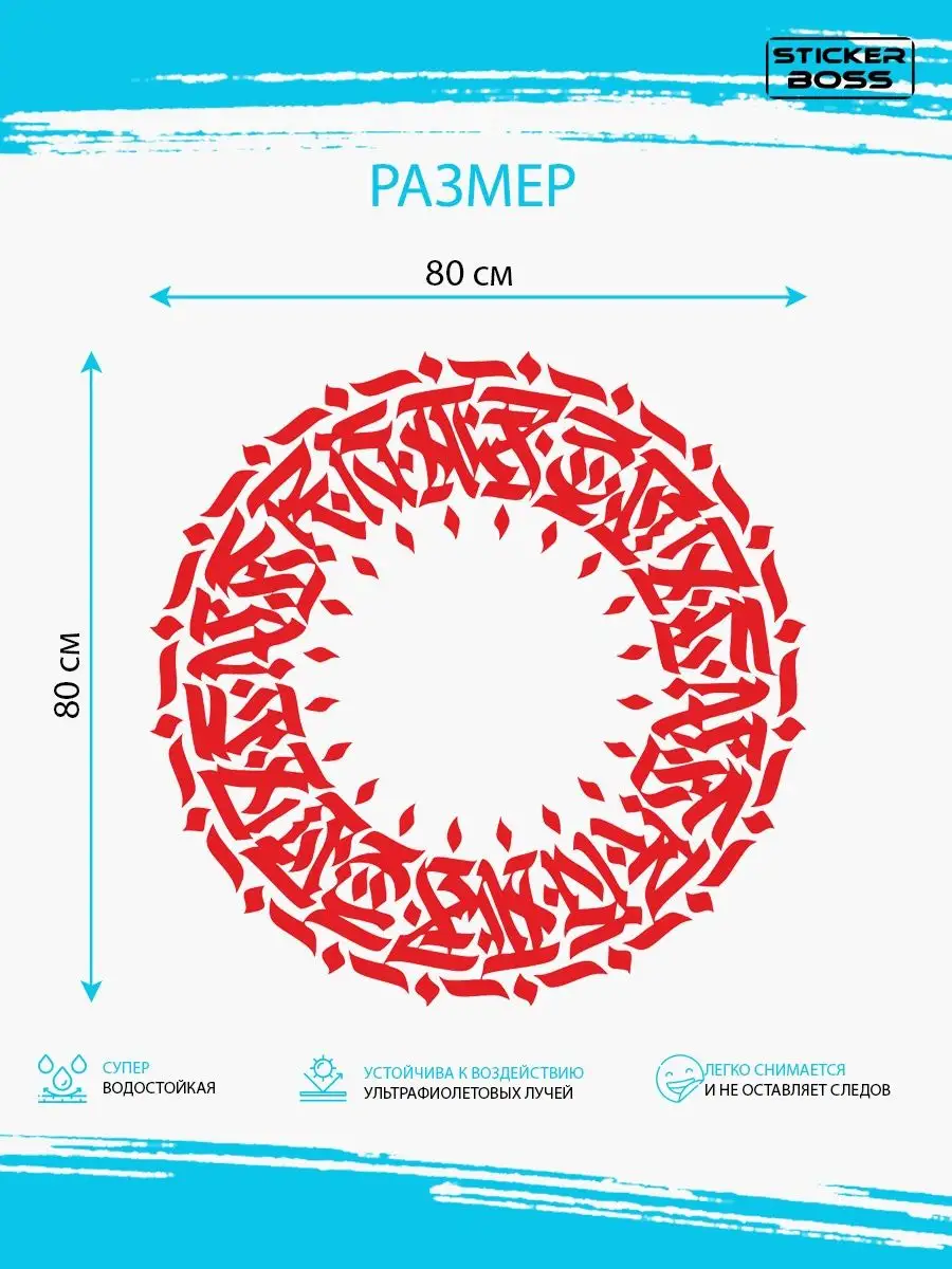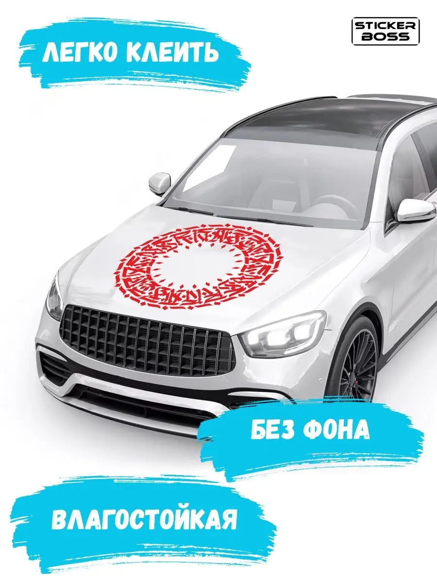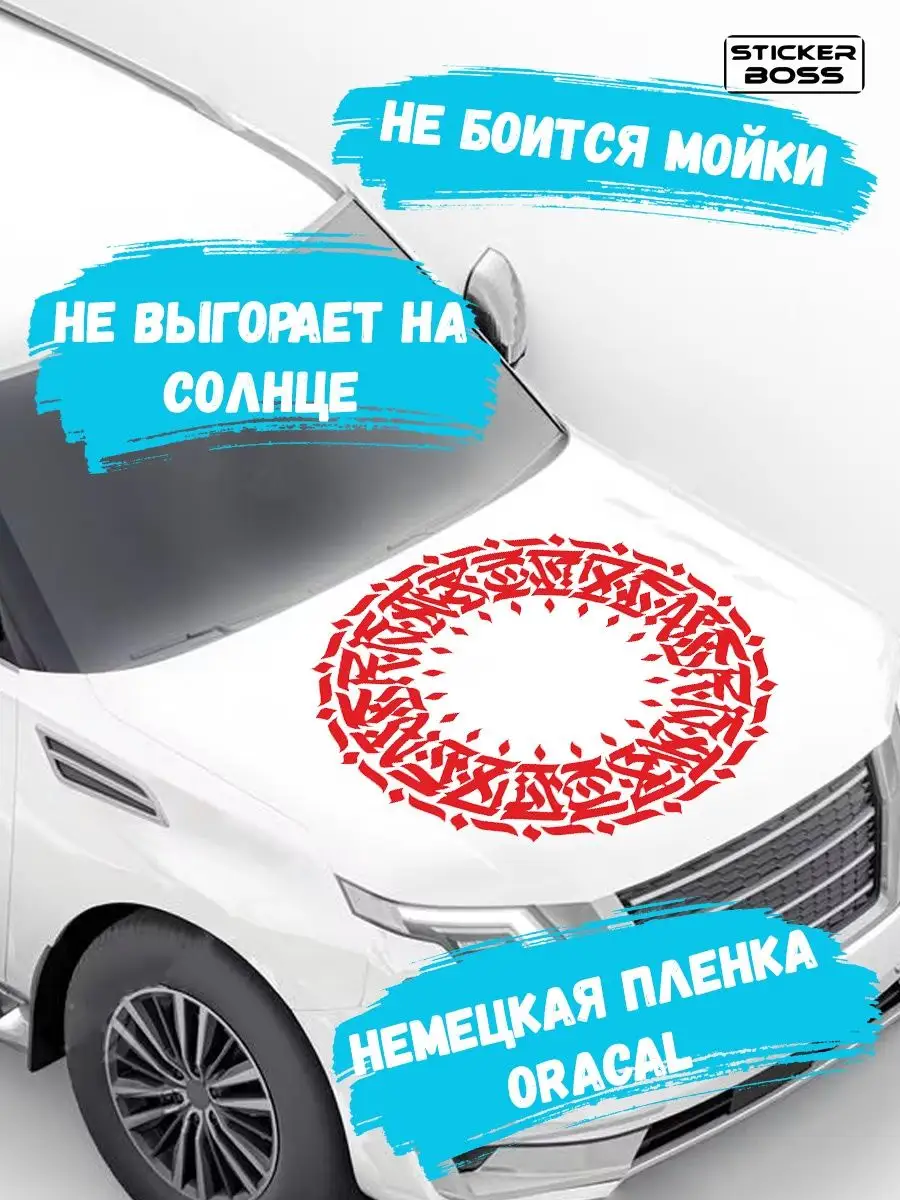 Эта наклейка Stickerboss сочетает стиль и долговечность: круглая графика Каллиграфия размером 80х80 подходит для украшения капота и кузова автомобиля.