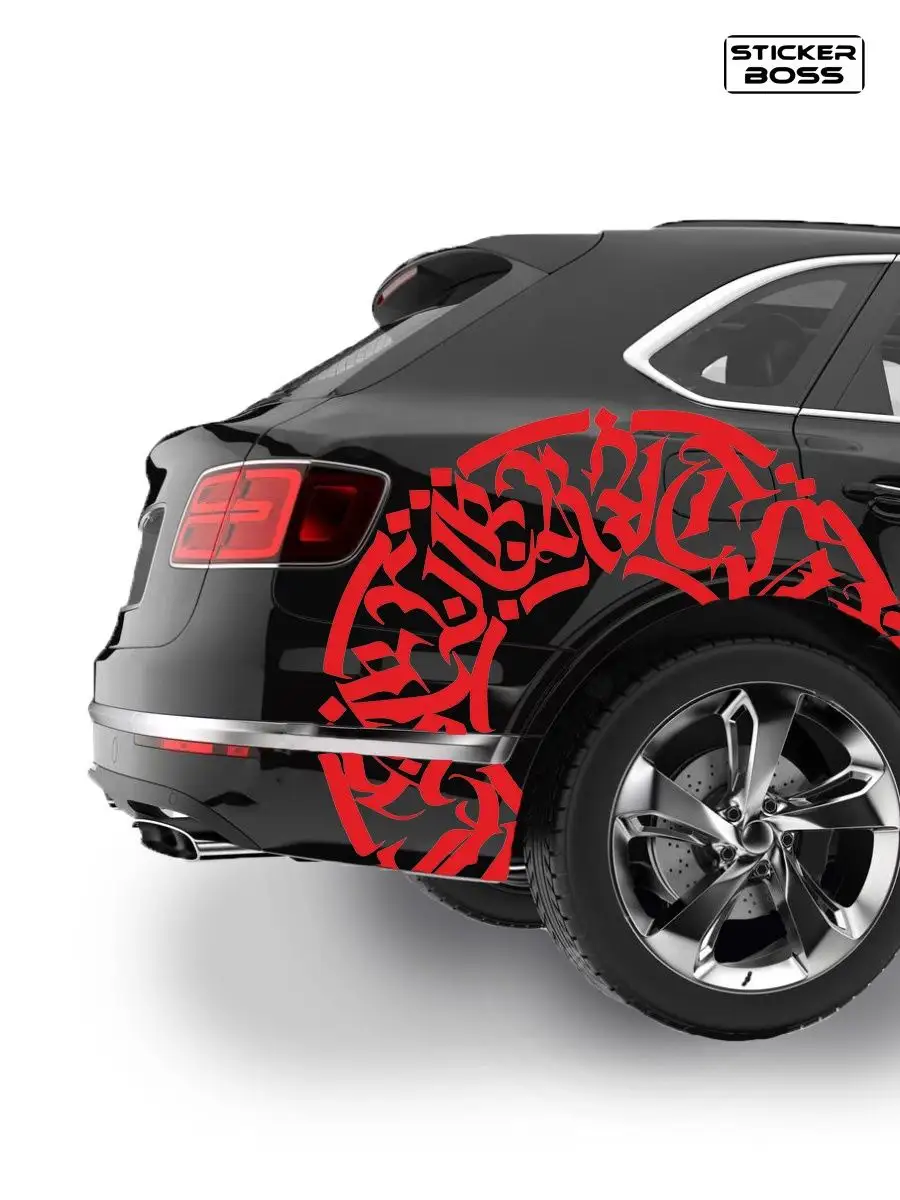 Преимущество наклейки Stickerboss состоит в декоративной выразительности и долговечности. Эта наклейка на капот выполнена в круглой форме диаметром 97х97 и изготовлена на прочной виниловой пленке ПВХ Oracal. Цвет красный и стиль Каллиграфия позволяют подчеркнуть индивидуальность автомобиля, при этом изображение устойчиво к мытью и погодным условиям. При необходимости наклейку можно снять без следов.