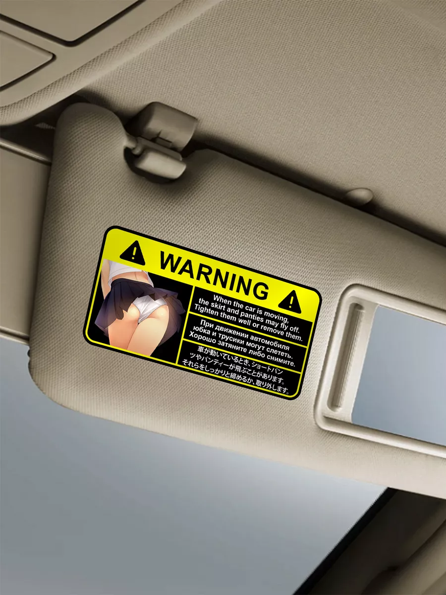 Наклейка на козырек WARNING JDM Anime — стильное решение для украшения салона автомобиля. Универсальный размер 13х7 см позволяет разместить наклейку на козырьке большинства автомобилей. Материал: самоклеящаяся виниловая пленка ПВХ. Наклейка устойчивая к мойкам, влаге и солнечному свету, не выгорает. При желании легко снимается, не оставляя следов.