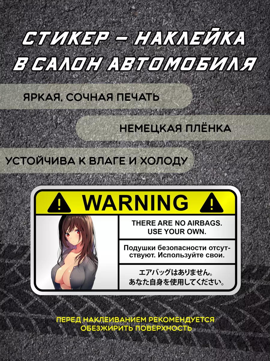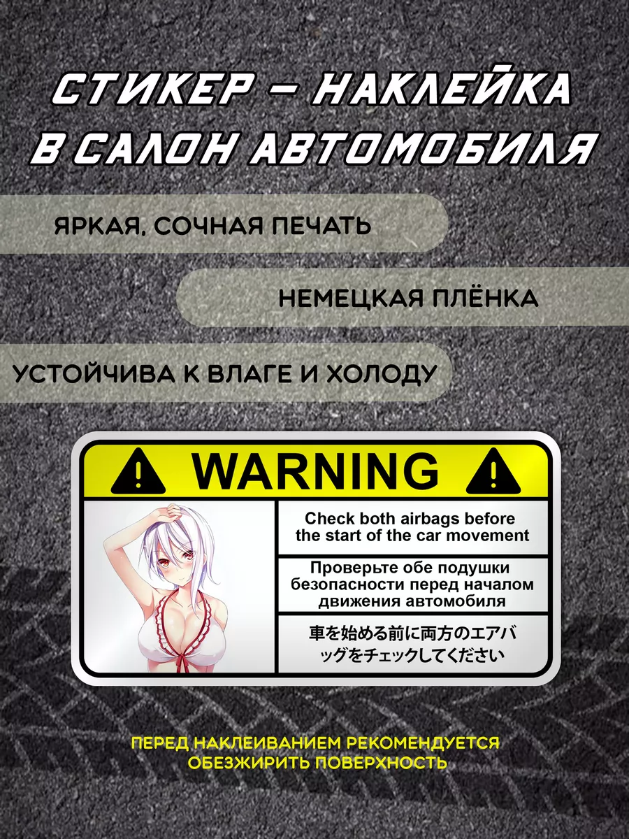 Декоративная наклейка Warning JDM Anime предназначена для козырька и других элементов салона автомобиля, превращая интерьер в стильное место. Размер универсальный – 13х7 см подходит для большинства моделей авто. Изготовлена на прочной самоклеящейся виниловой пленке ПВХ, она устойчива к мытью, солнечному свету и неблагоприятным условиям. При необходимости легко снимается без следов. Товар упакован в защитную упаковку и доставляется по России в сохранности и с яркими цветами. Stickerboss — бренд, заслуживший популярность у поклонников JDM и аниме.