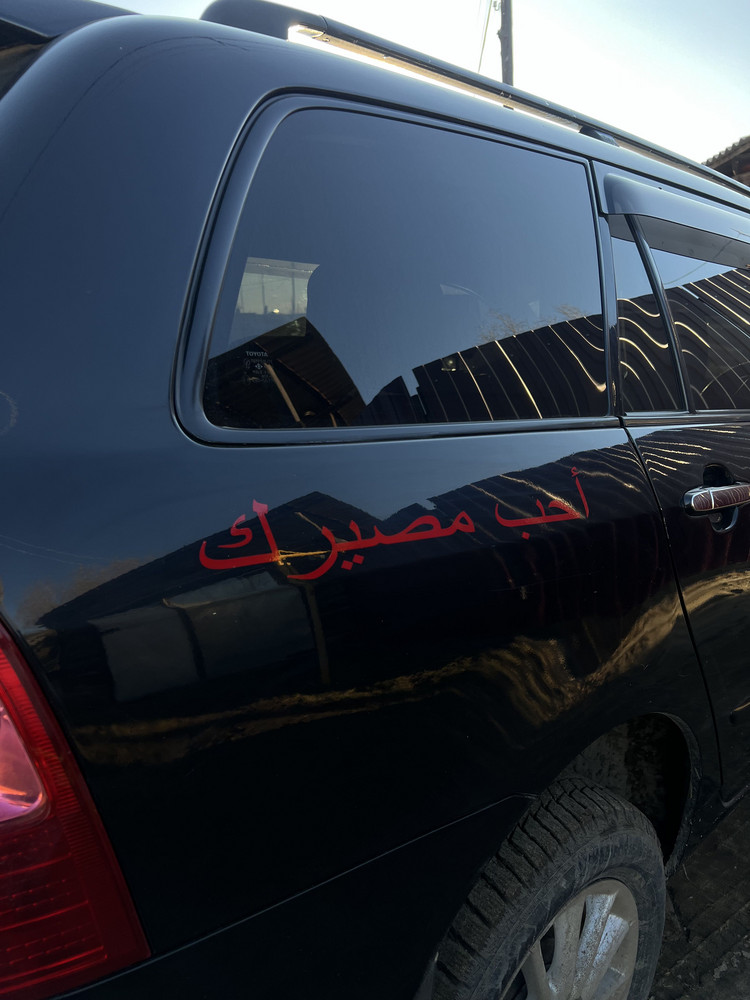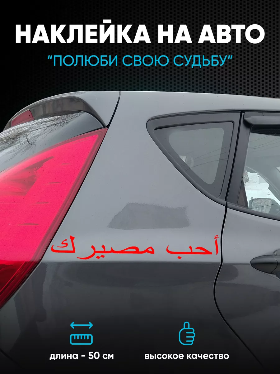 Эта наклейка на крыло — лаконичный способ подчеркнуть индивидуальность вашего автомобиля. Выполнена из долговечной самоклеящейся виниловой пленки ПВХ Oracal красного цвета и рассчитана на внешний кузов. Размер 50х10 см, надпись Полюби свою судьбу на арабском объединяет стиль и смысл.
