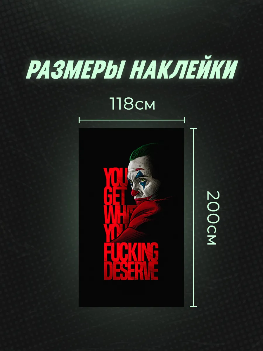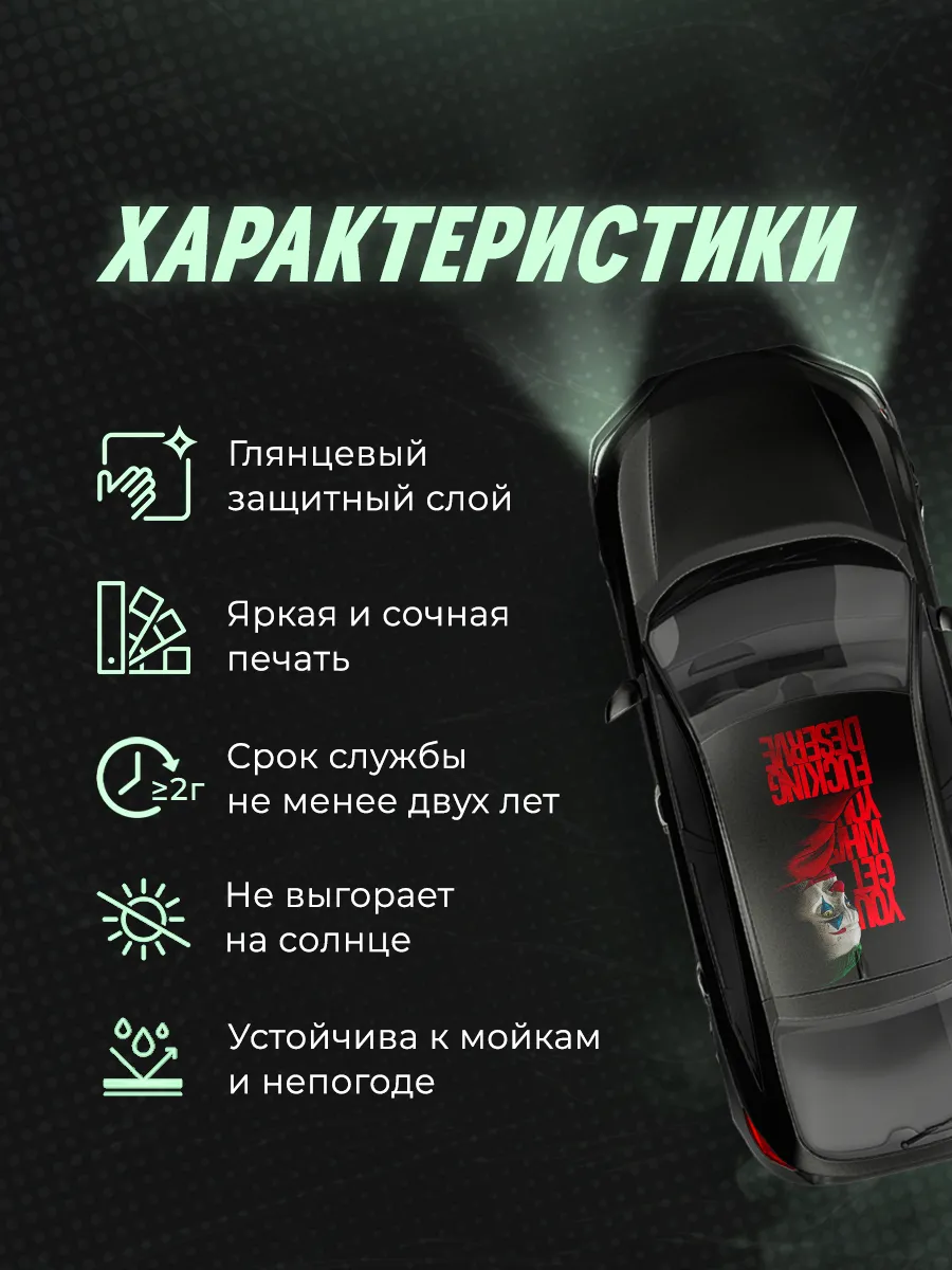 Преобразите внешний вид вашего авто с наклейкой на крышу размером 200х118 см. Этот элемент тюнинга привлекает взгляды и подчеркивает индивидуальность, не перегружая общий стиль машины. Дизайн Джокер добавляет дерзости и оригинальности образу на дороге.