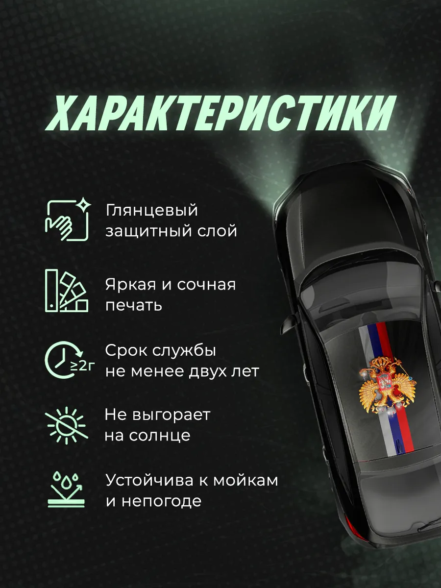Эта наклейка на крышу автомобиля размером 200х118 см позволяет подчеркнуть индивидуальность и придать автомобилю выразительный внешний вид. Наклейка выполнена на прочной самоклеящейся виниловой пленке ПВХ и рассчитана на долговременную службу.