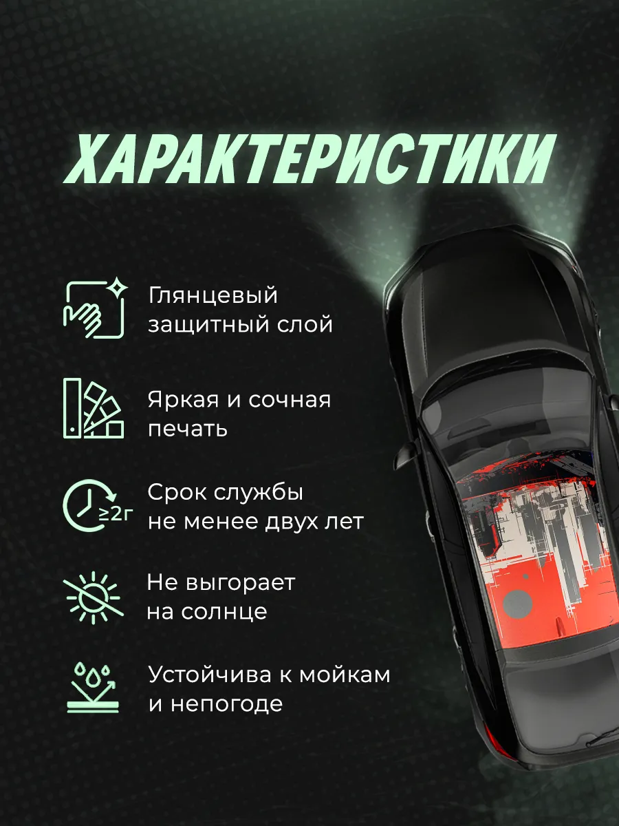 Откройте для себя уникальную коллекцию наклеек размером 200х118 см на крышу автомобиля, которая превратит ваше транспортное средство в объект восхищения и удивления, а внешний тюнинг автомобиля - в приятное и увлекательное занятие