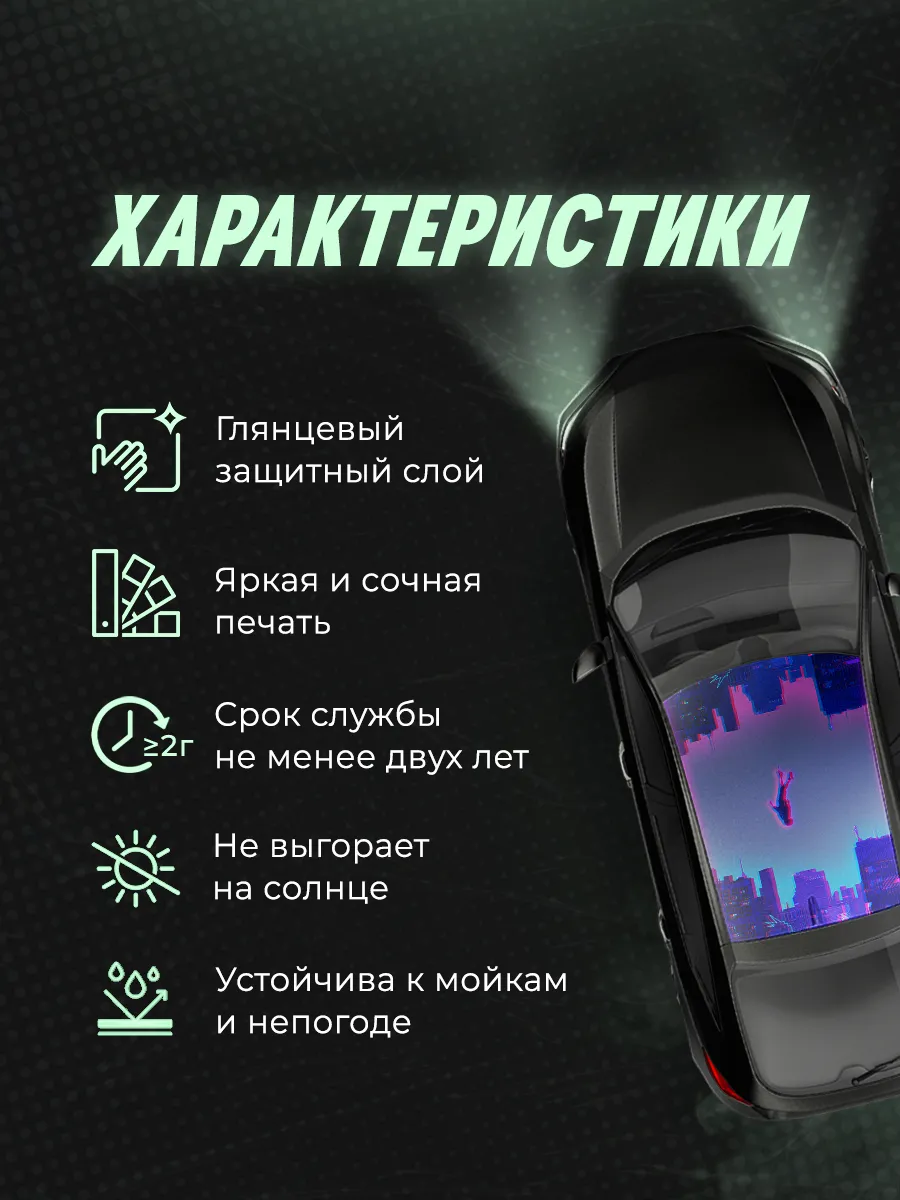Подходит для крыш автомобилей любых моделей, позволяет выделиться на дороге и подчеркнуть стиль владельца. Коллекция включает разнообразные принты — от графических узоров до мотивов из кино и флагов.