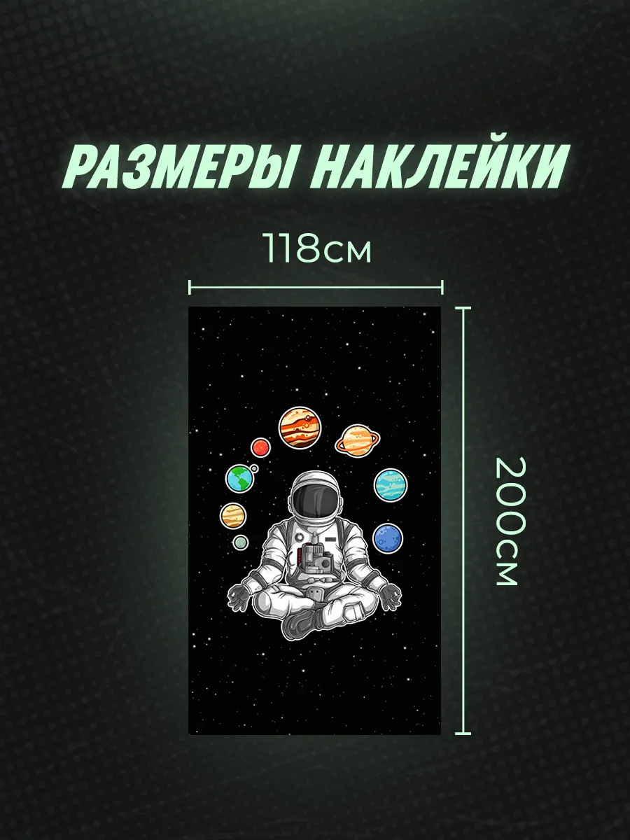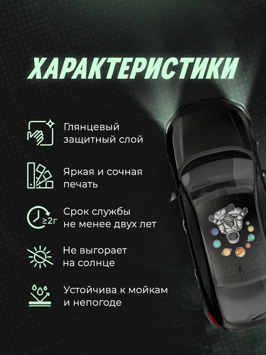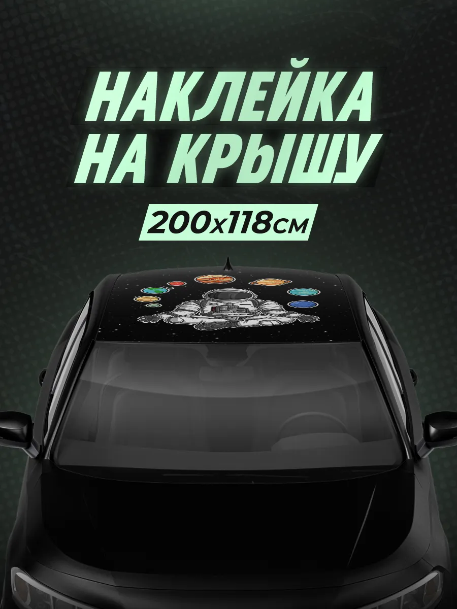 Эта наклейка на крышу автомобиля размером 200х118 см позволяет превратить обычный транспорт в заметный элемент стиля. Дизайн с изображением космонавта 88 добавляет уникальности и может привлечь внимание на дороге.