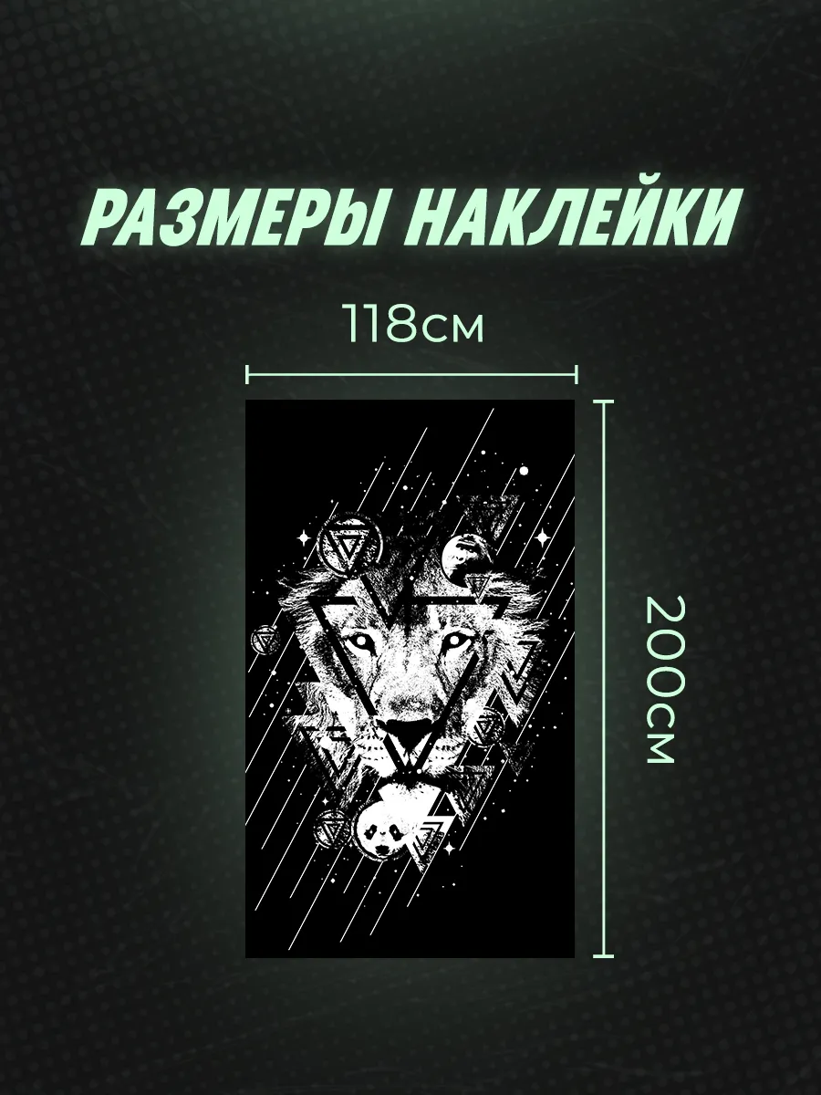Эта наклейка размером 200x118 см предназначена для крыш авто и превращает транспортное средство в выразительный элемент стиля. Эффектный рисунок лев в абстракции подчеркивает индивидуальность владельца и выделяет автомобиль на дороге. Коллекция сочетает яркие принты и оригинальные узоры, подходящие для внешнего тюнинга и автотоваров.
