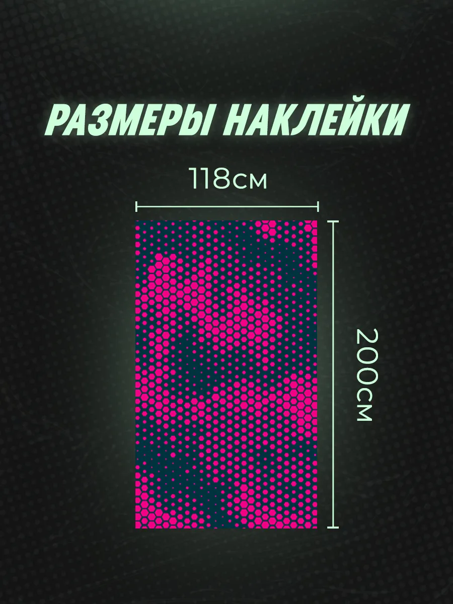 Эта наклейка на крышу автомобиля размером 200×118 см позволяет быстро изменить образ кузова и добавить индивидуальности. Яркий узор в виде сот создаёт стильный акцент и подчёркивает внешний тюнинг автомобиля. Материал — самоклеящаяся виниловая пленка ПВХ, которая обеспечивает долговечность и стойкость к выгорании под солнечными лучами. Установка по простому алгоритму не требует специальных инструментов — результат выглядит профессионально.