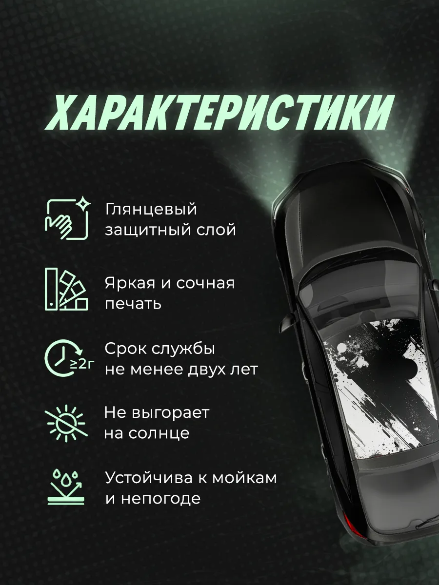 Откройте для себя уникальную коллекцию наклеек размером 200х118 см на крышу автомобиля, которая превратит ваше транспортное средство в объект восхищения и удивления, а внешний тюнинг автомобиля - в приятное и увлекательное занятие