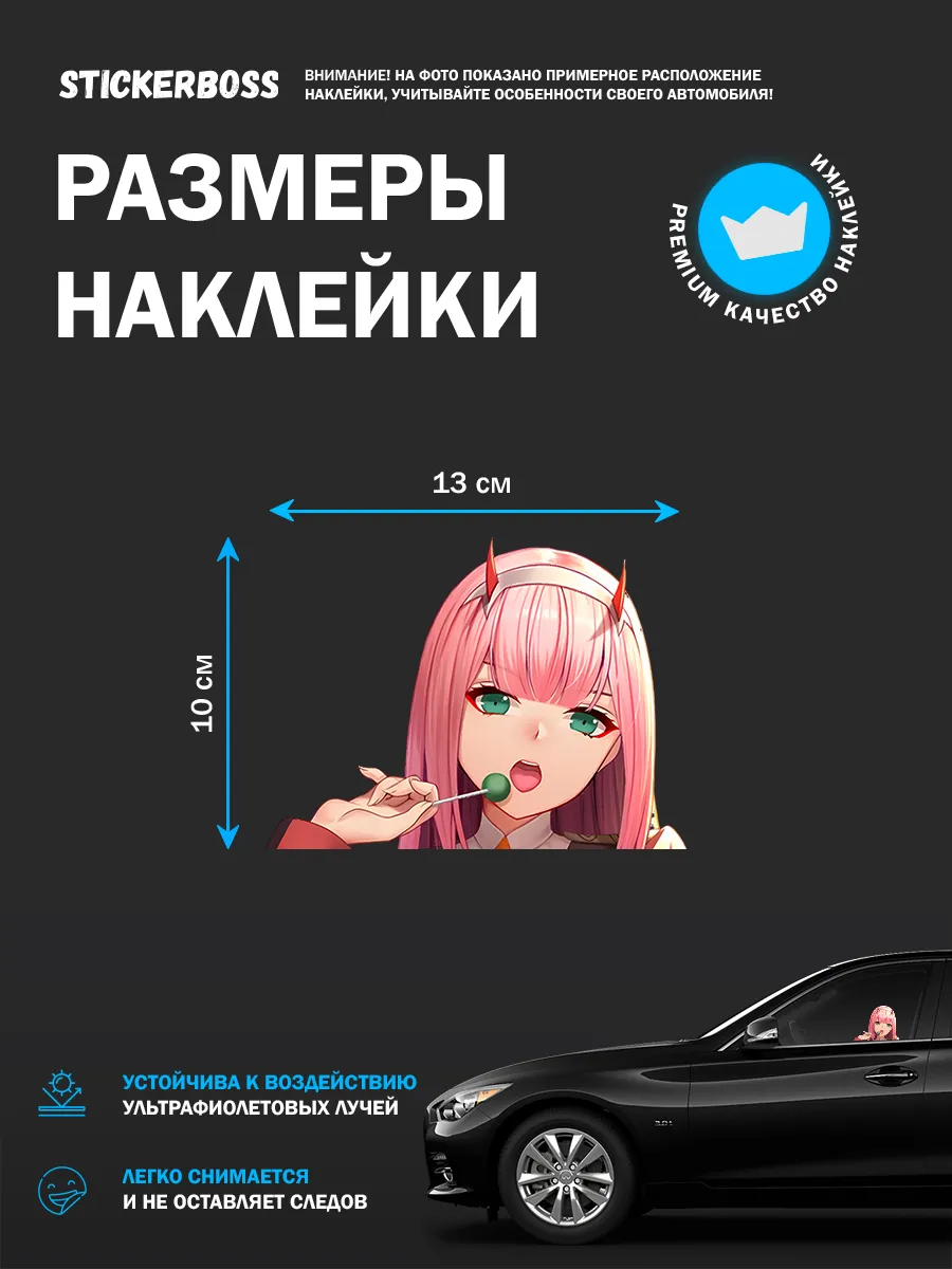 Наклейка на стекло авто аниме Darling in the Franxx 2 позволяет придать автомобилю уникальный стиль и подчеркнуть любовь к аниме культуре. Наклейка изготовлена из самоклеящейся виниловой пленки ПВХ Oracal, устойчива к погодным условиям и ультрафиолету, сохраняет яркость цветов. Легко наносится и снимается, не оставляя следов на стекле.