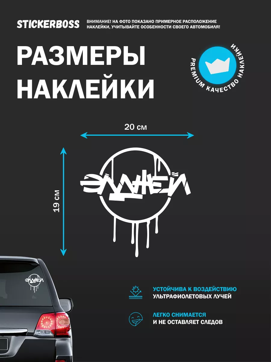 Перед наклеиванием поверхность автомобиля следует очистить и высушить. Снимите защитную подложку, разместите наклейку на стекле или кузове и плотно прижмите. При необходимости используйте резиновый шпатель, чтобы исключить пузырьки воздуха. Не клеите на неровные поверхности и в сырую погоду.