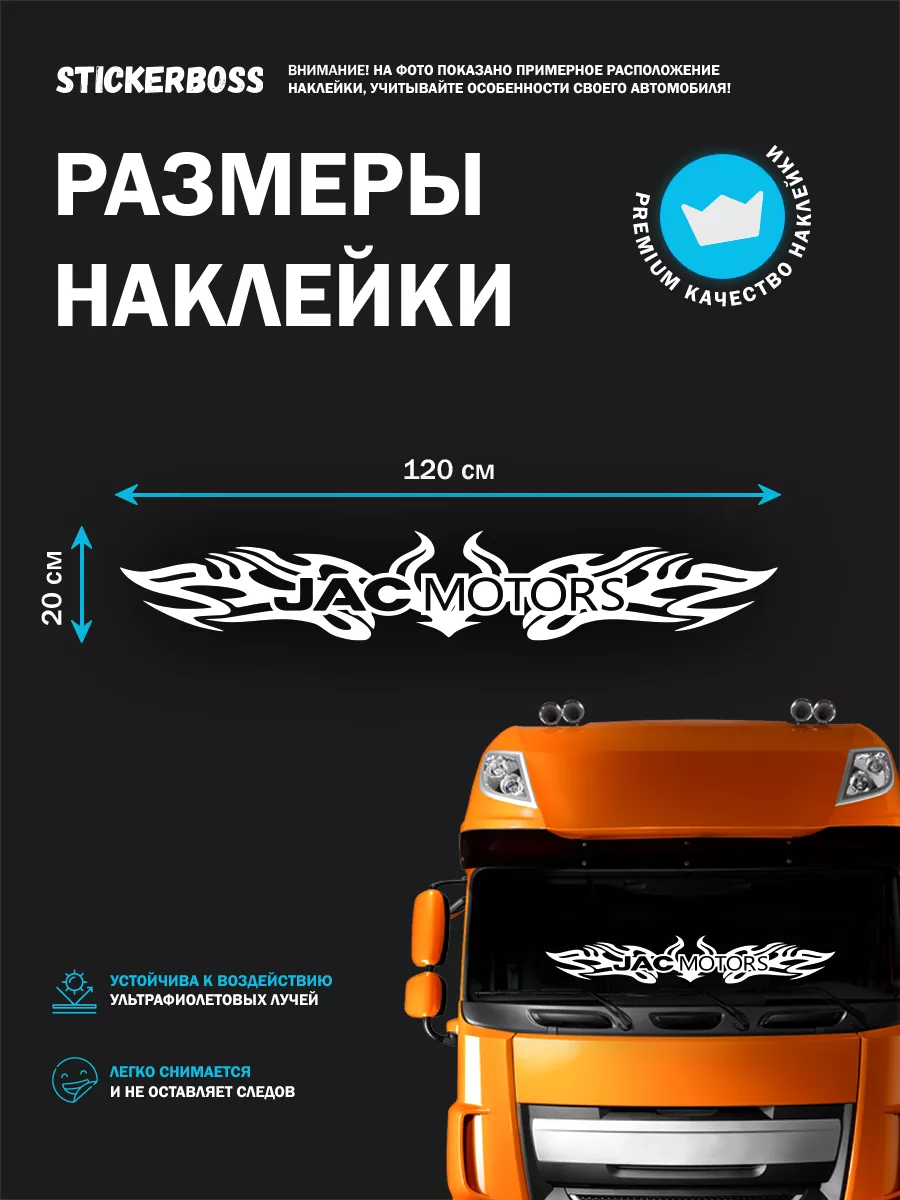 Наши большие наклейки на лобовое стекло фуры, шириной 120 см, идеально подходят для владельцев грузовиков, желающих подчеркнуть бренд своего автомобиля