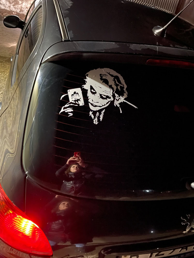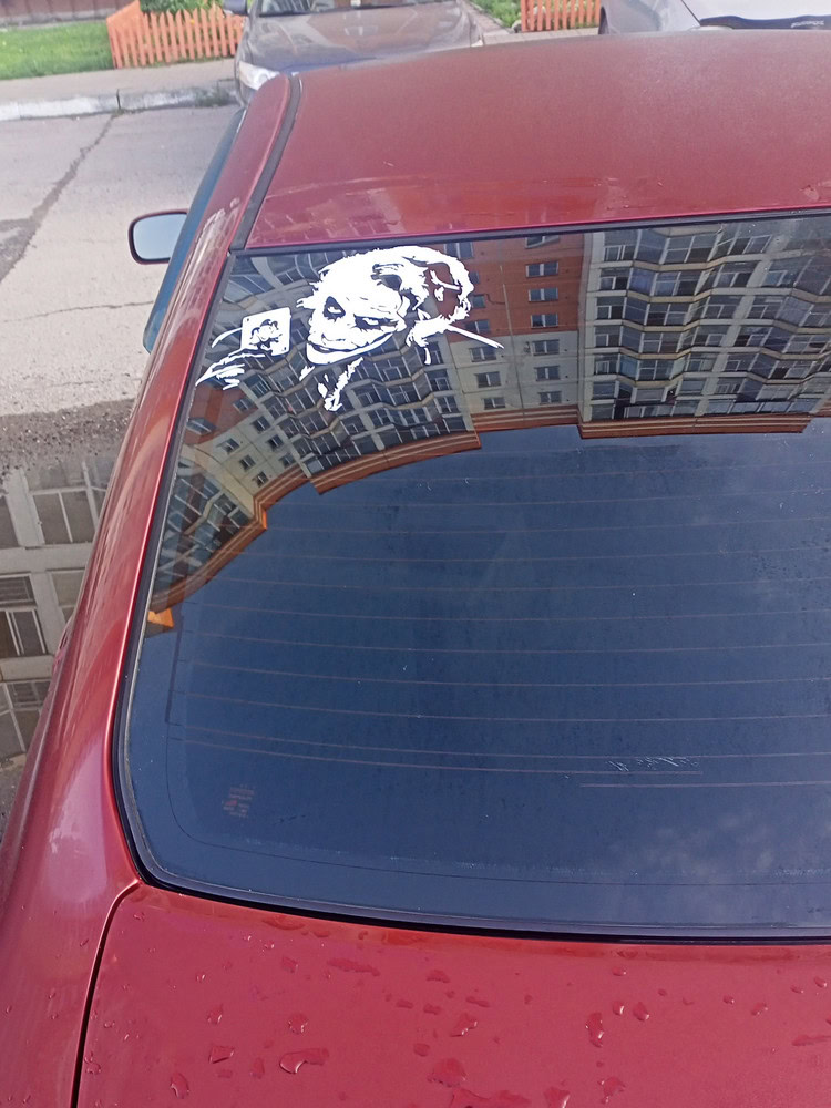 Эта наклейка служит декоративным элементом для автомобиля и одновременно дает возможность выразить стиль владельца. Наклейка изготовлена из прочной ПВХ-пленки Oracal, устойчива к внешним воздействиям и сохраняет яркость цветов под солнцем и дождем. Белый рисунок Джокера добавляет элемент андерграундной эстетики и загадочности.