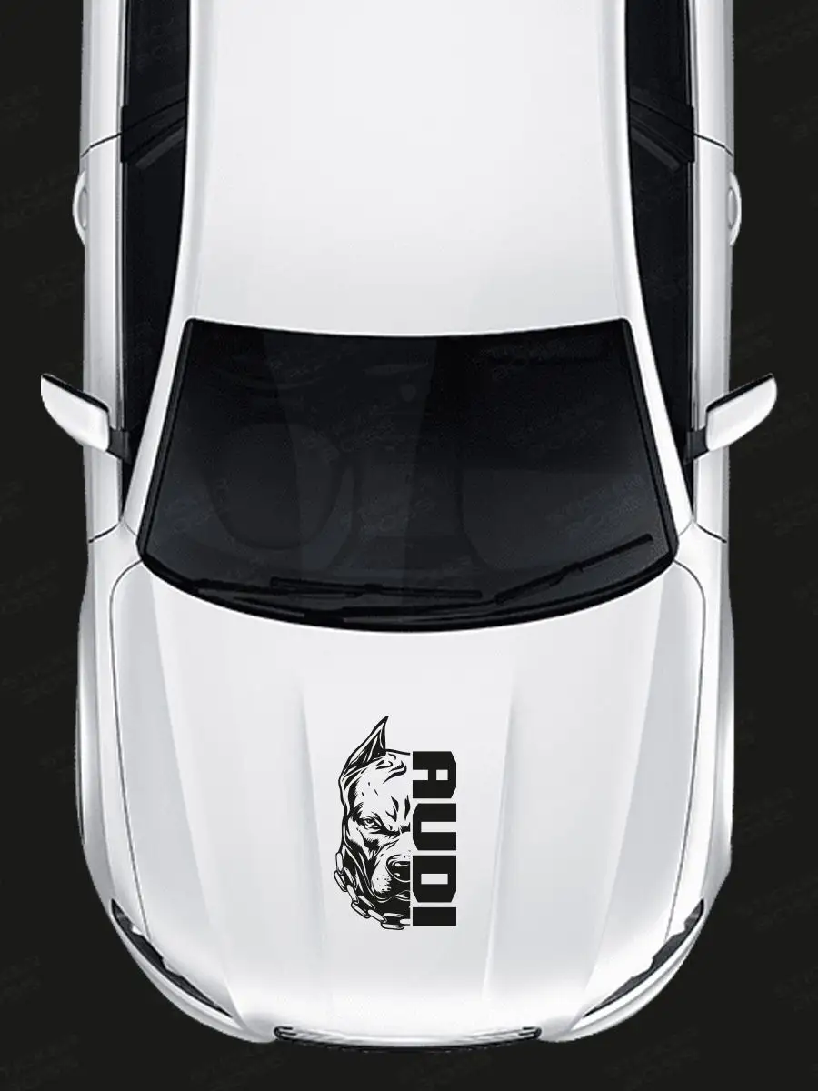 Наклейку можно разместить на капоте, кузове или стекле, чтобы выразить стиль и характер машины. Дизайн сочетает изображение мощного питбуля с названием марки автомобиля, подчеркивая уверенность владельца.
