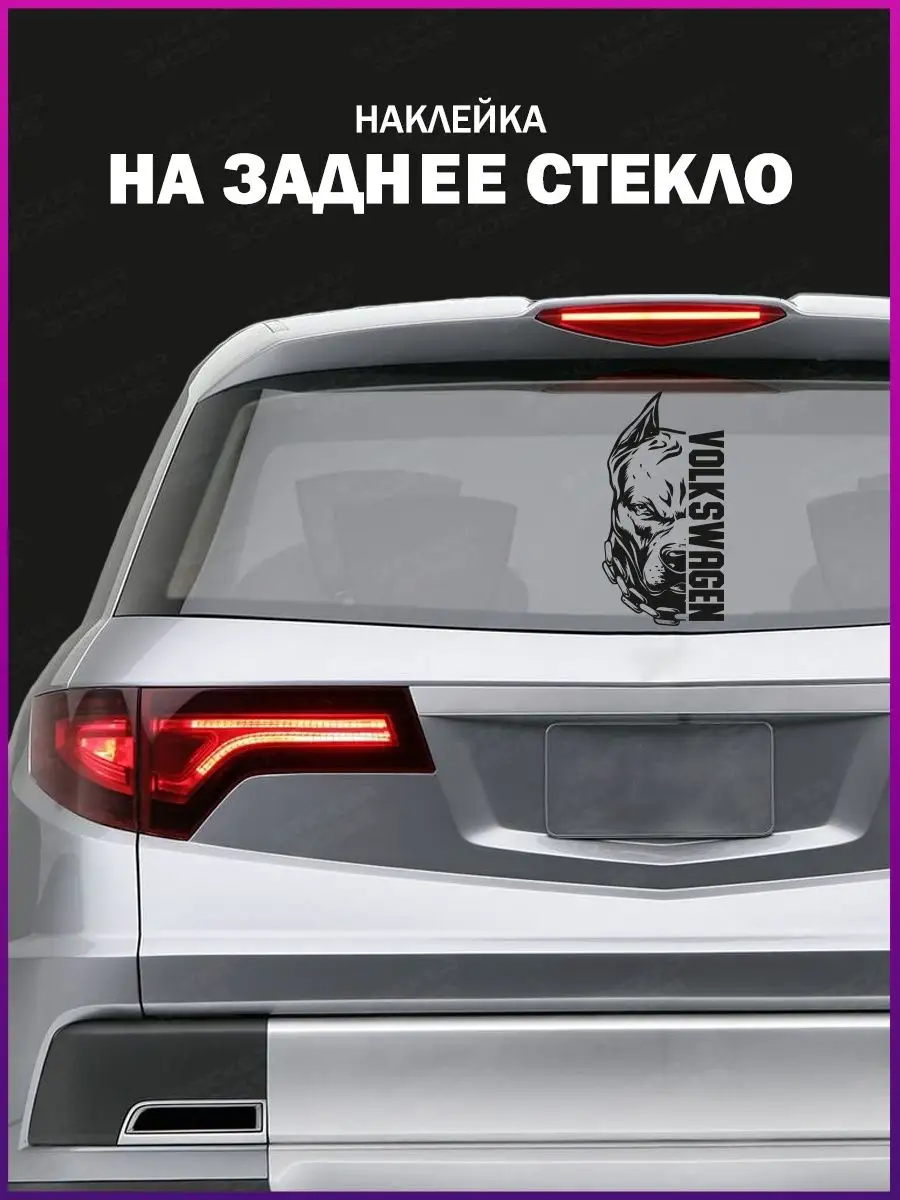 Стильная наклейка Stickerboss с изображением питбуля и названием марки авто предназначена для внешнего декора вашего автомобиля. Черная виниловая пленка хорошо контрастирует с любой краской и делает автомобиль заметнее на дороге.